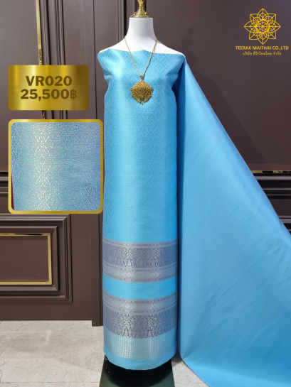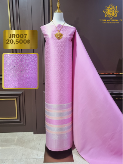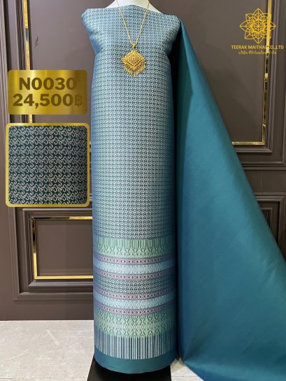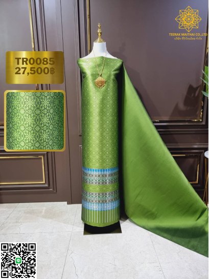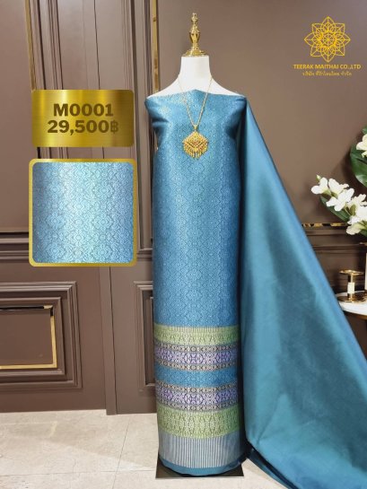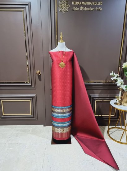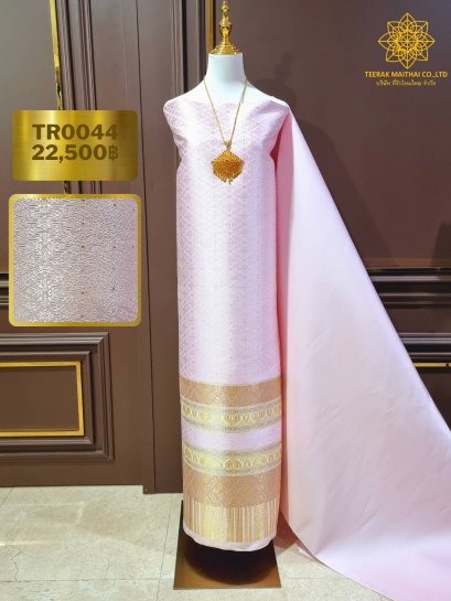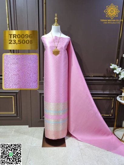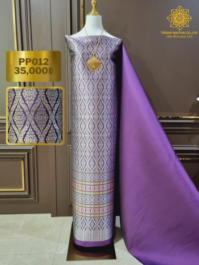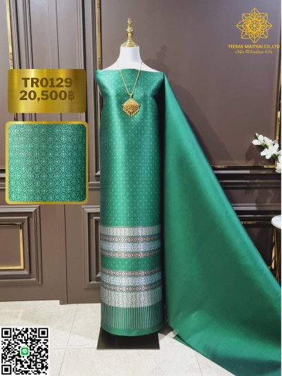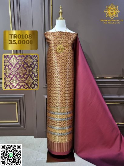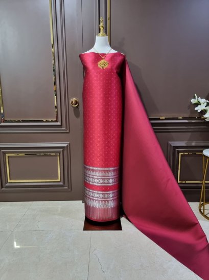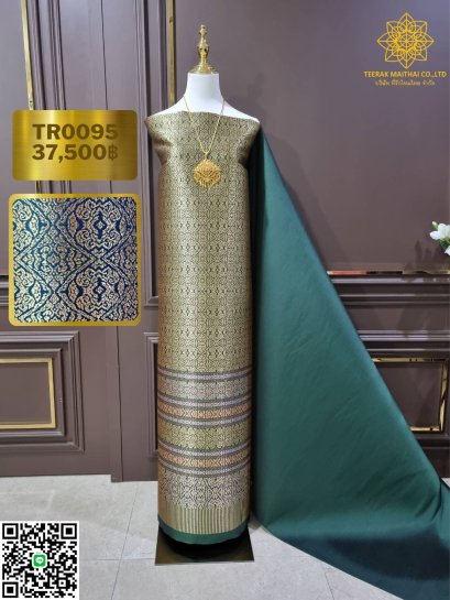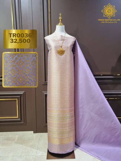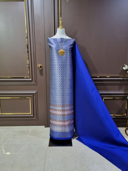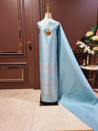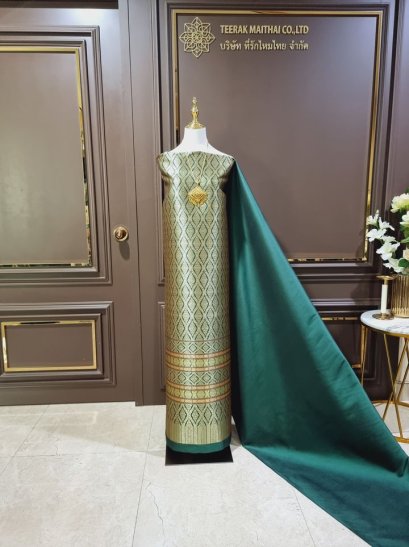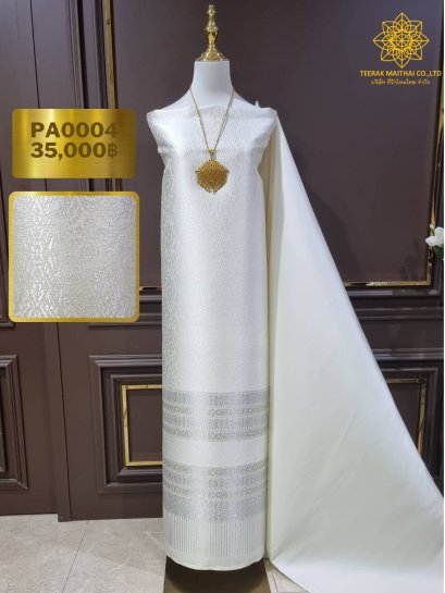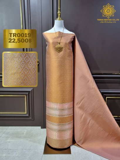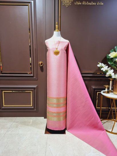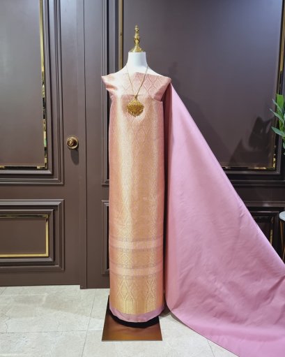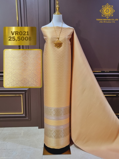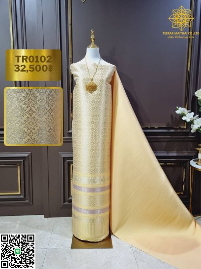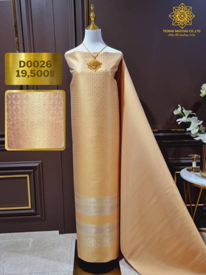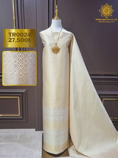 ผ้าไหมยกดอกลำพูนสีครีมยกดอกดิ้นทอง