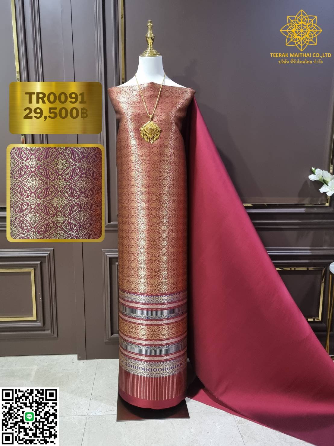 ผ้าไหมยกดอกลำพูนสีแดงยกดอกดิ้นทอง