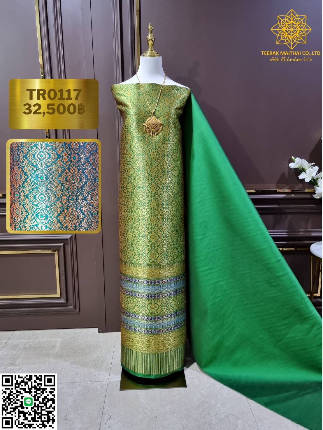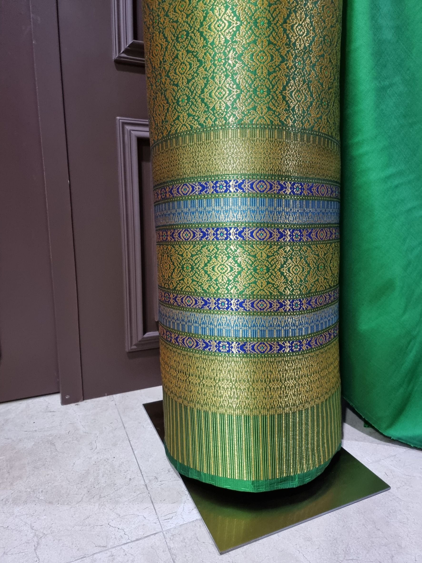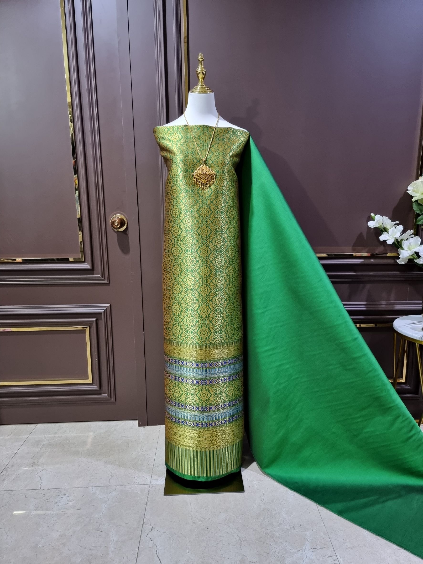ผ้าไหมลำพูนสีชมพูสีเขียวยกดอกดิ้นทอง