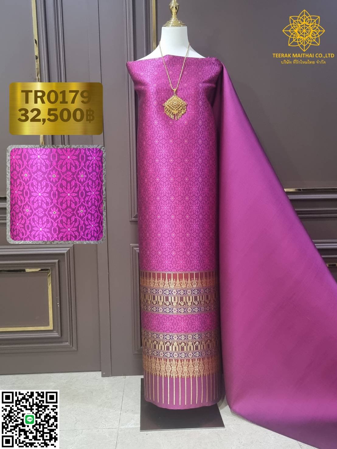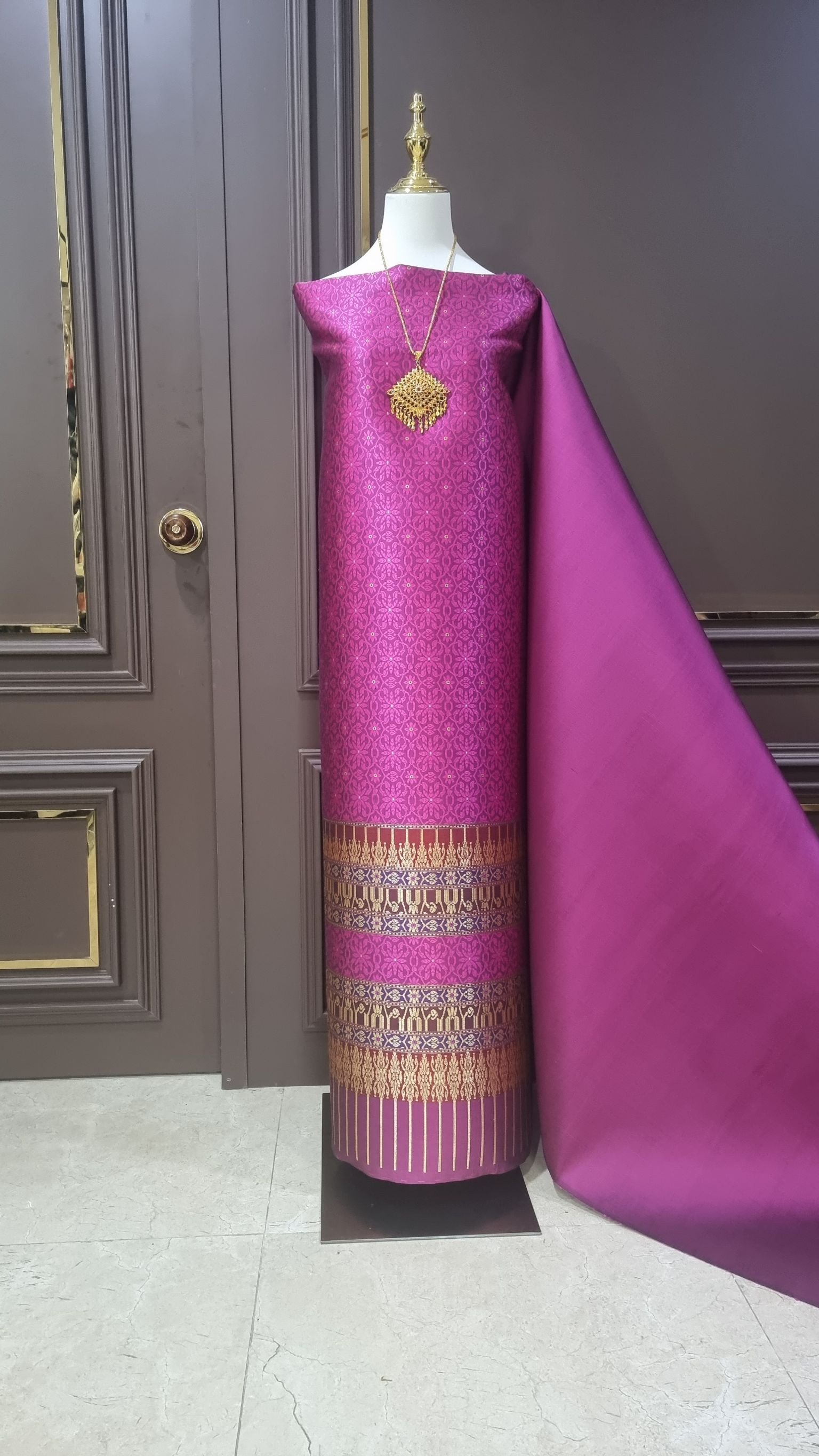ผ้าไหมยกดอกลำพูนสีบานเย็นเกาะเชิงดิ้นทอง