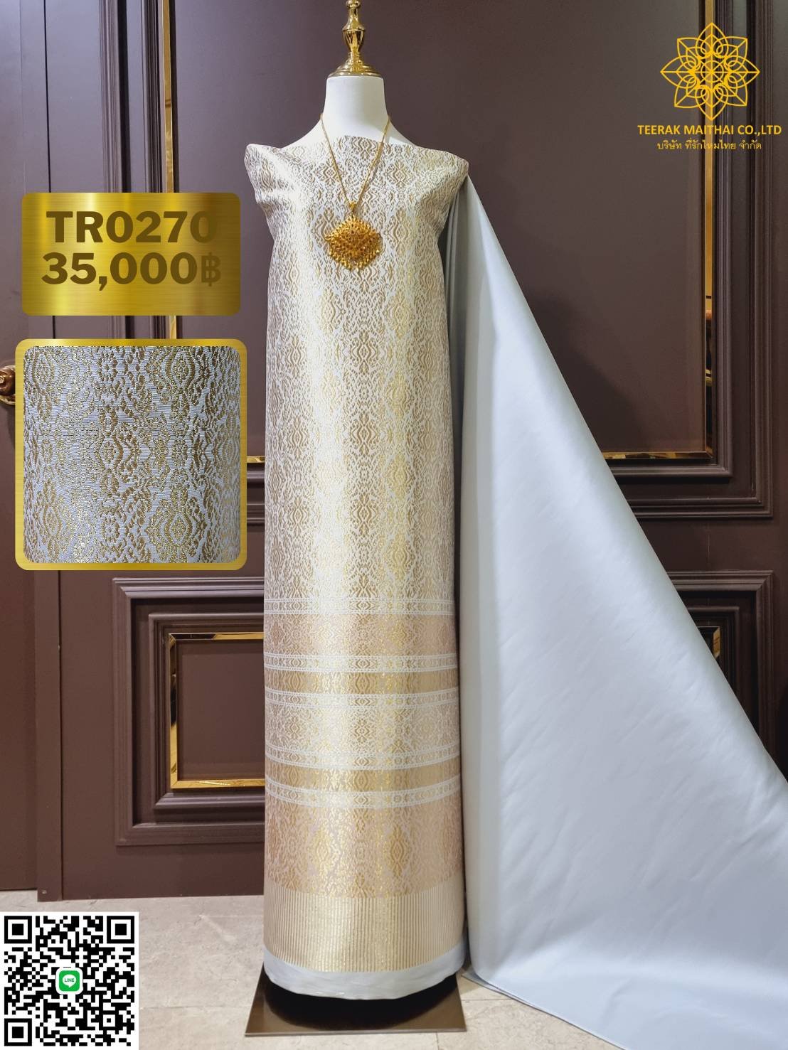 ลายอินเดีย ยกใหญ่ลำพูนสีขาวออฟไวท์ยกดอกดิ้นเงิน