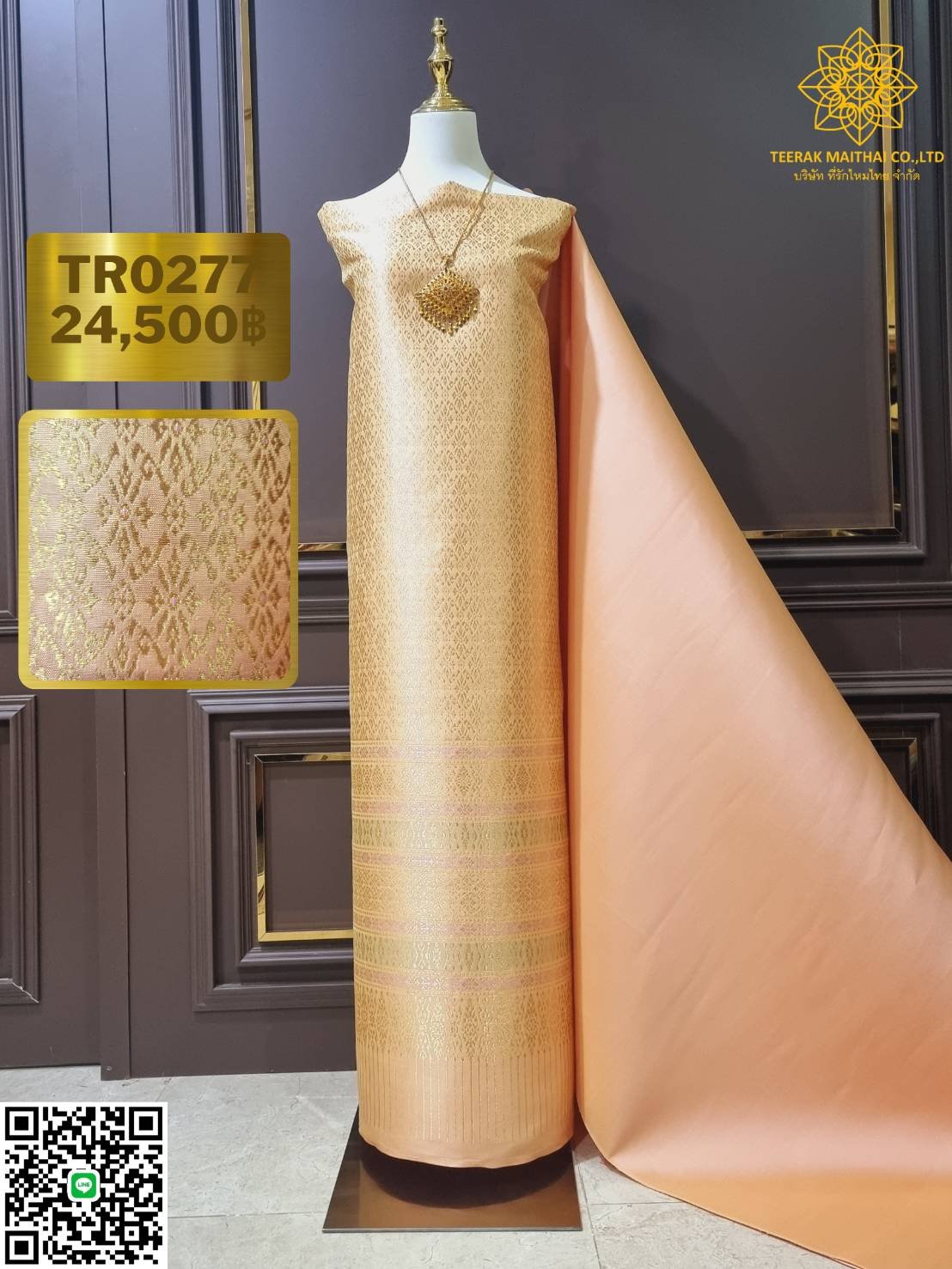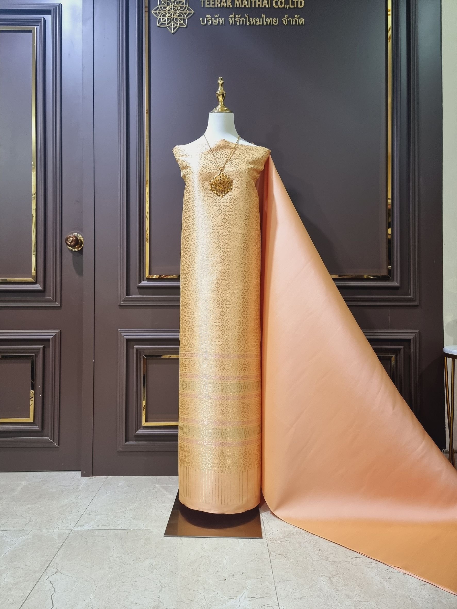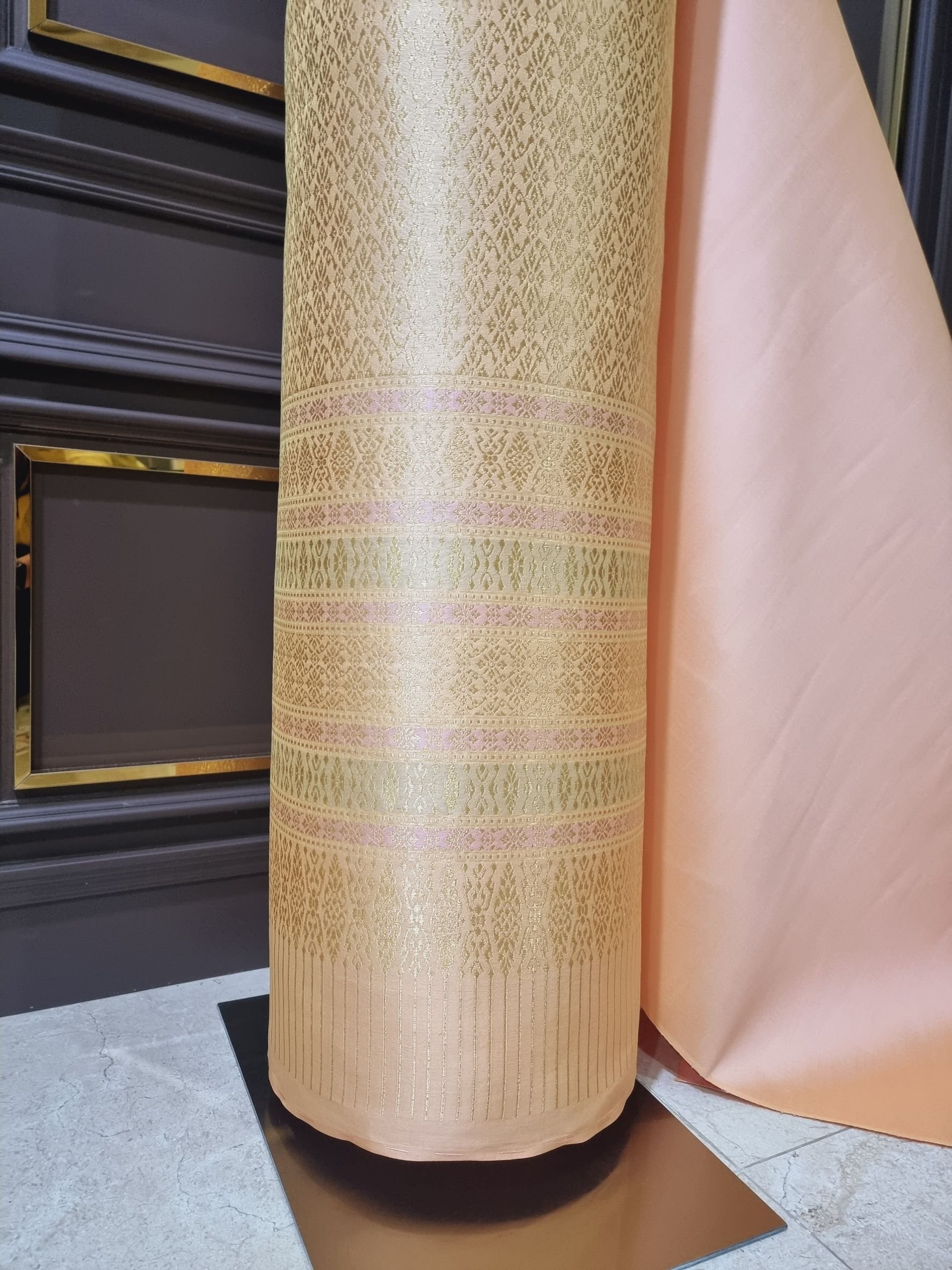 ผ้าไหมลำพูนสีโอโรสยกดอกดิ้นทอง