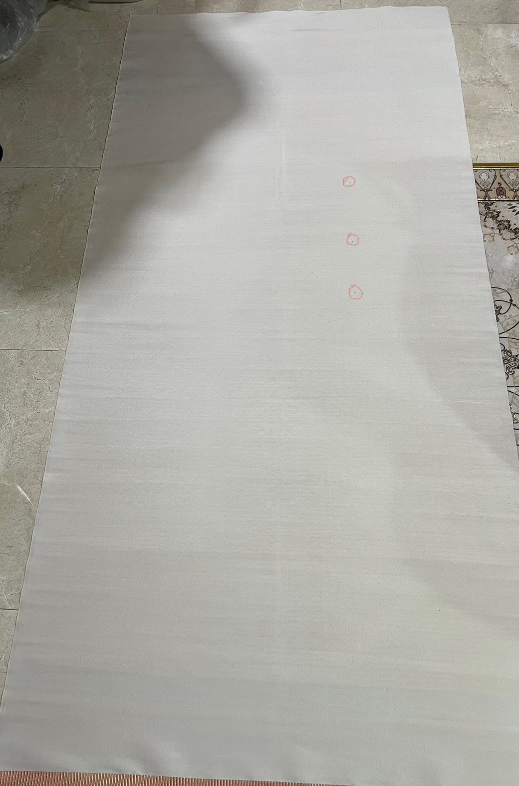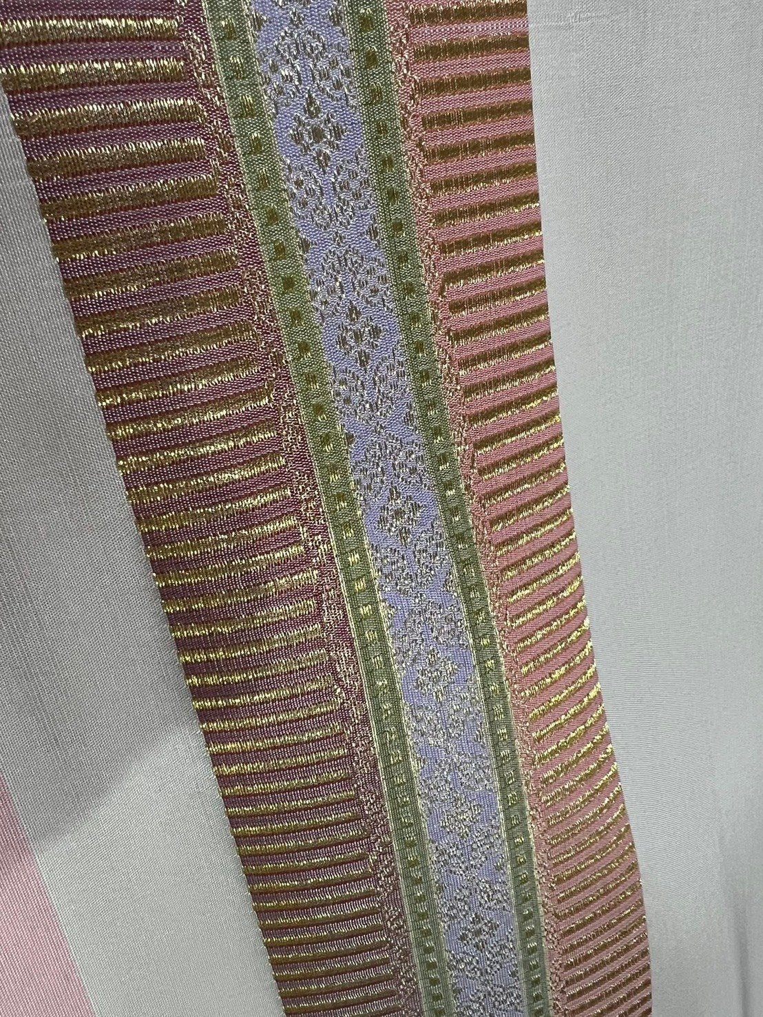 ผ้าพื้นมีตำหนิ ลายพิกุลโบราณ ยกใหญ่ลำพูนสีเบจอ่อน เกาะเชิงดิ้นทอง
