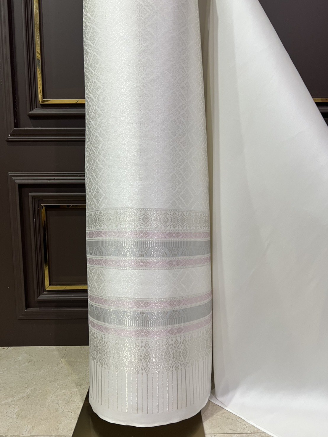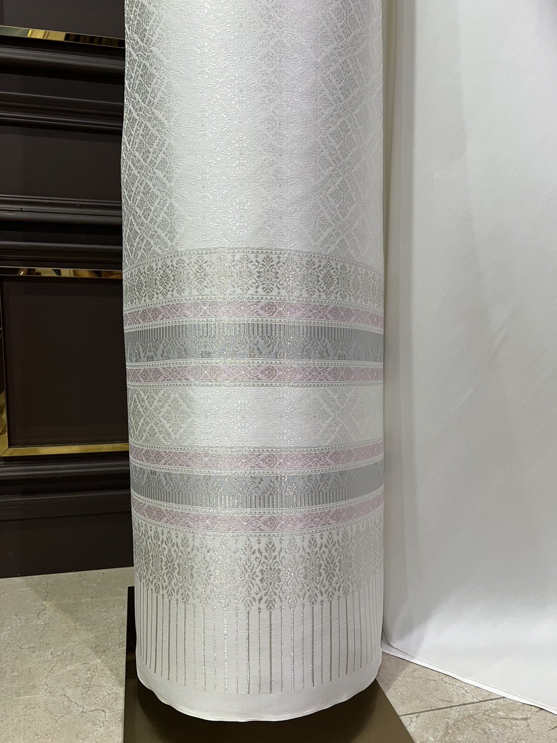 ผ้าไหมยกดอกลำพูนสีขาวออฟไวท์