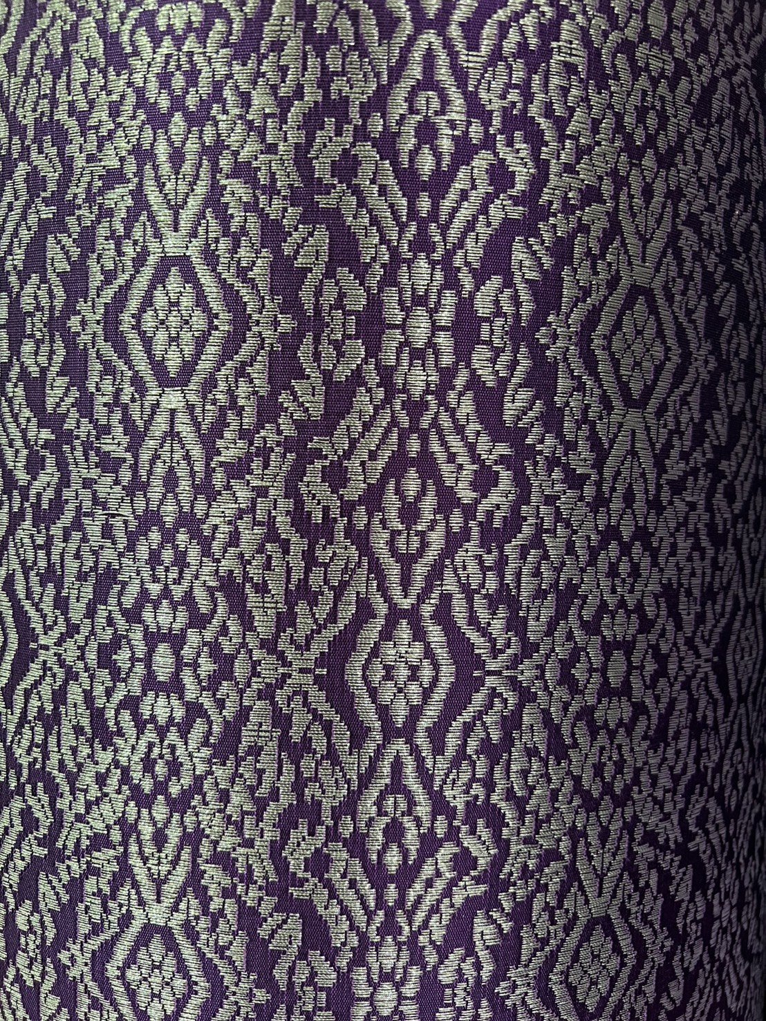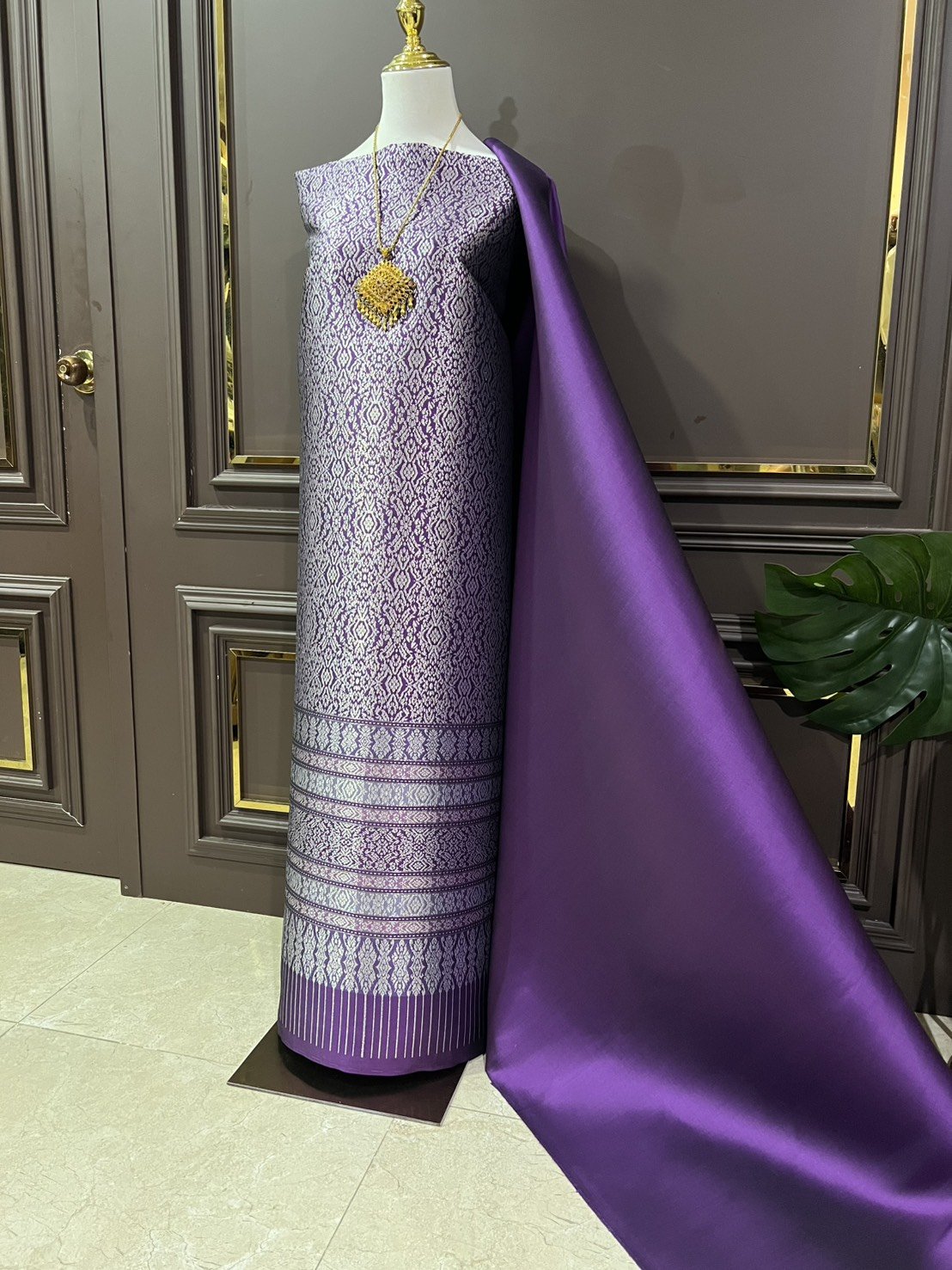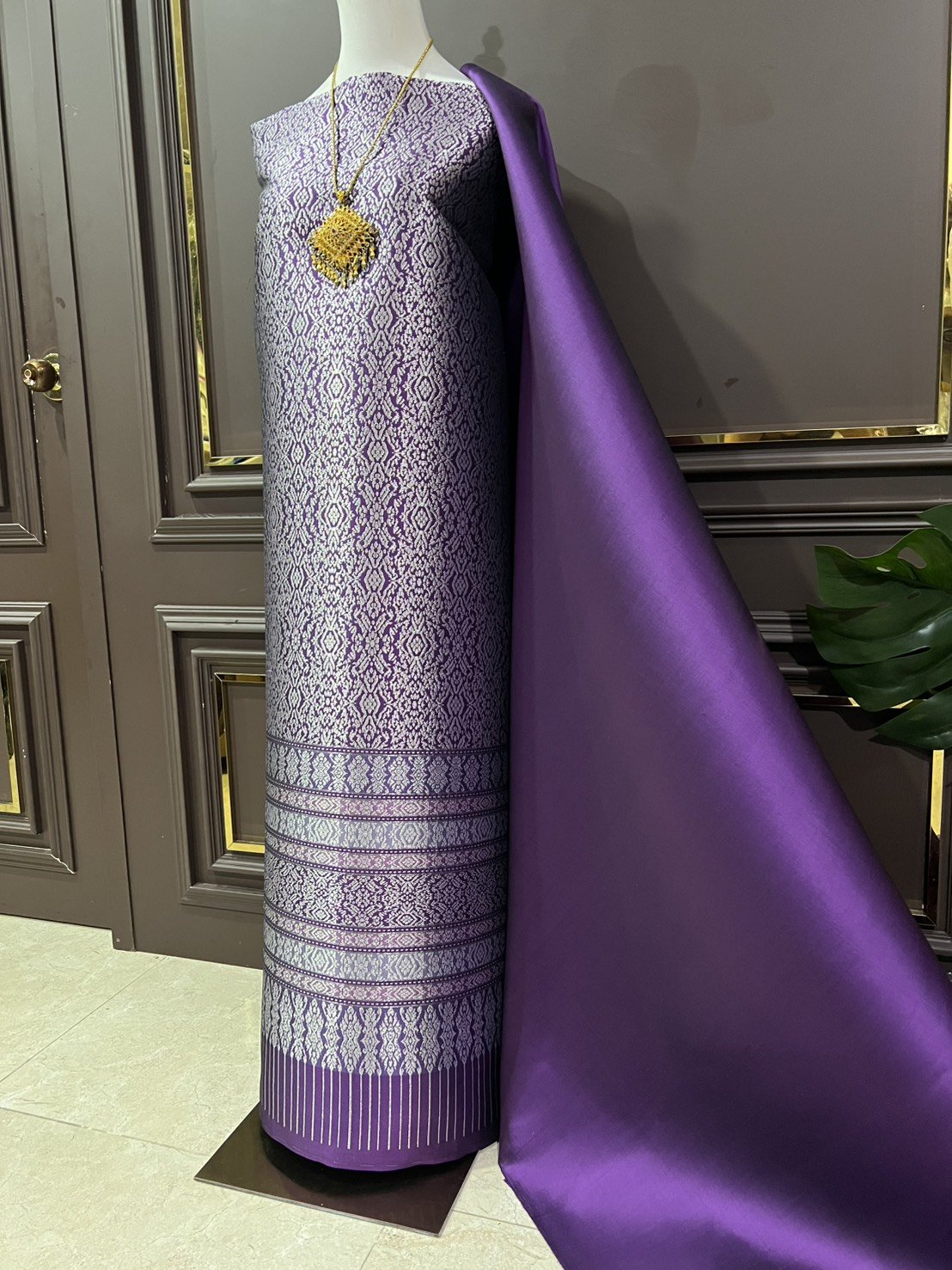 ลายอินเดีย ยกใหญ่ลำพูนสีม่วงพระเทพยกดอกดิ้นเงิน