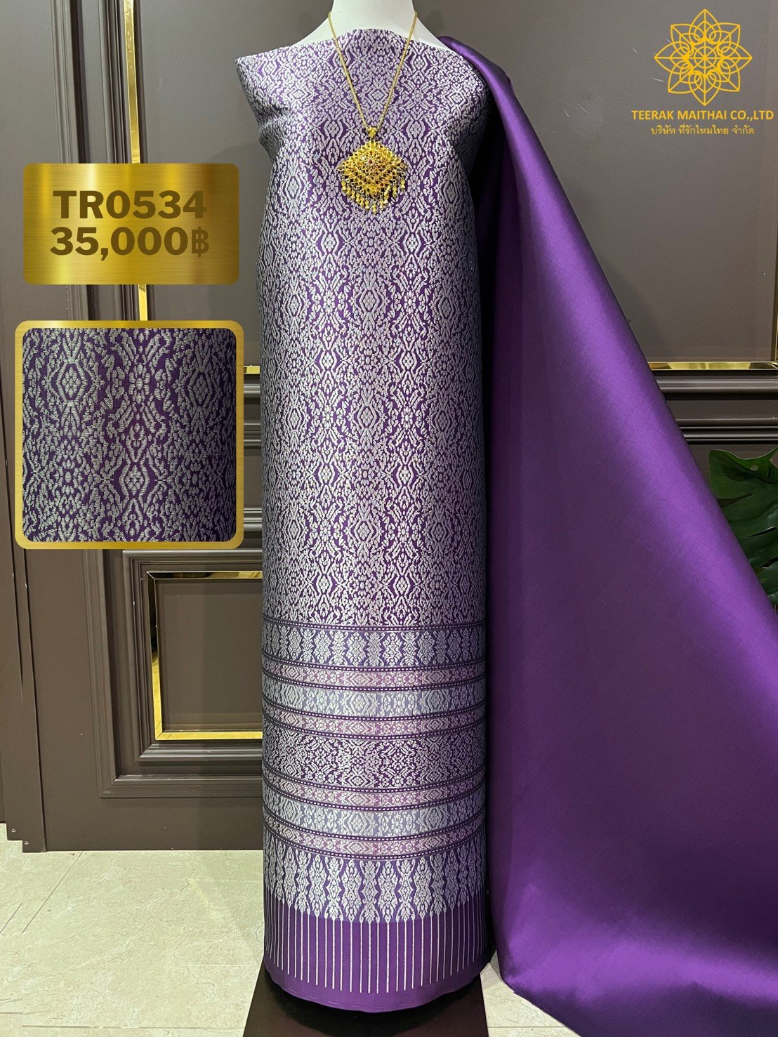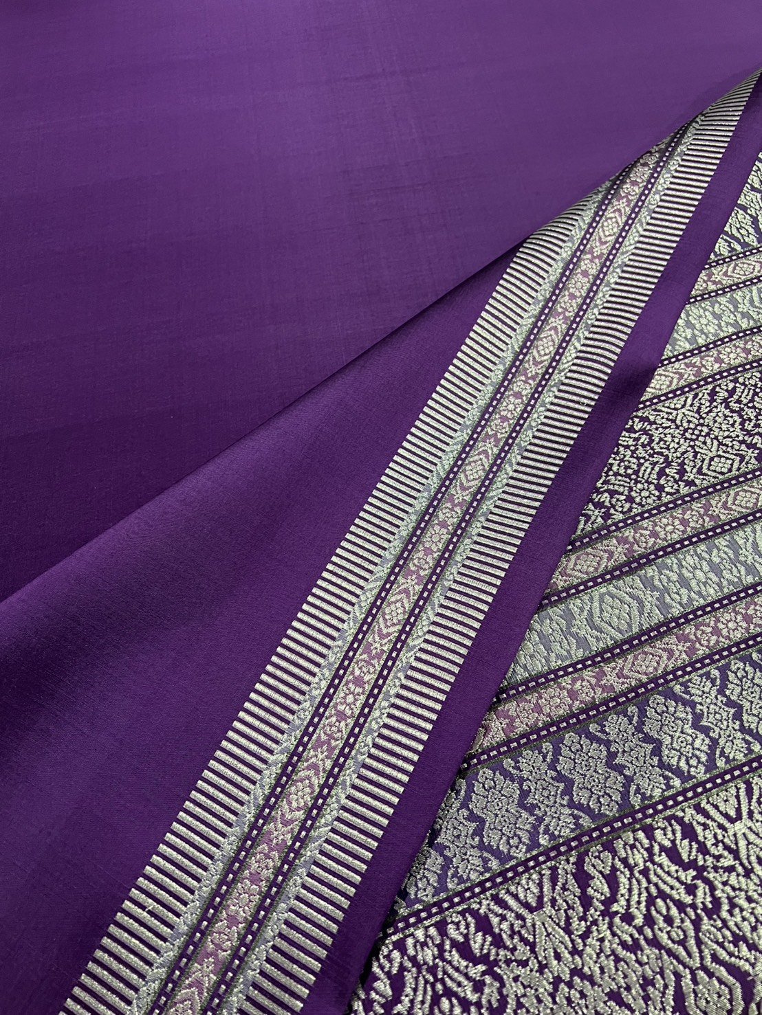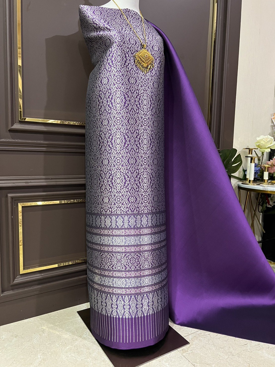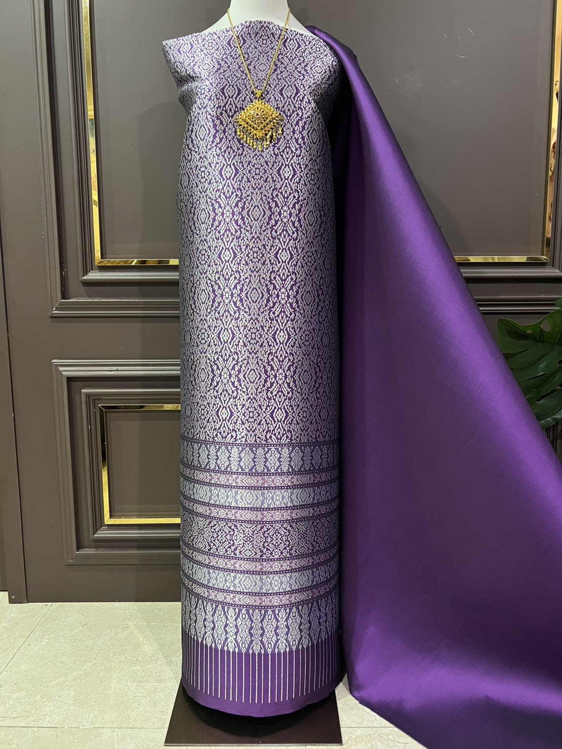 ลายอินเดีย ยกใหญ่ลำพูนสีม่วงพระเทพยกดอกดิ้นเงิน