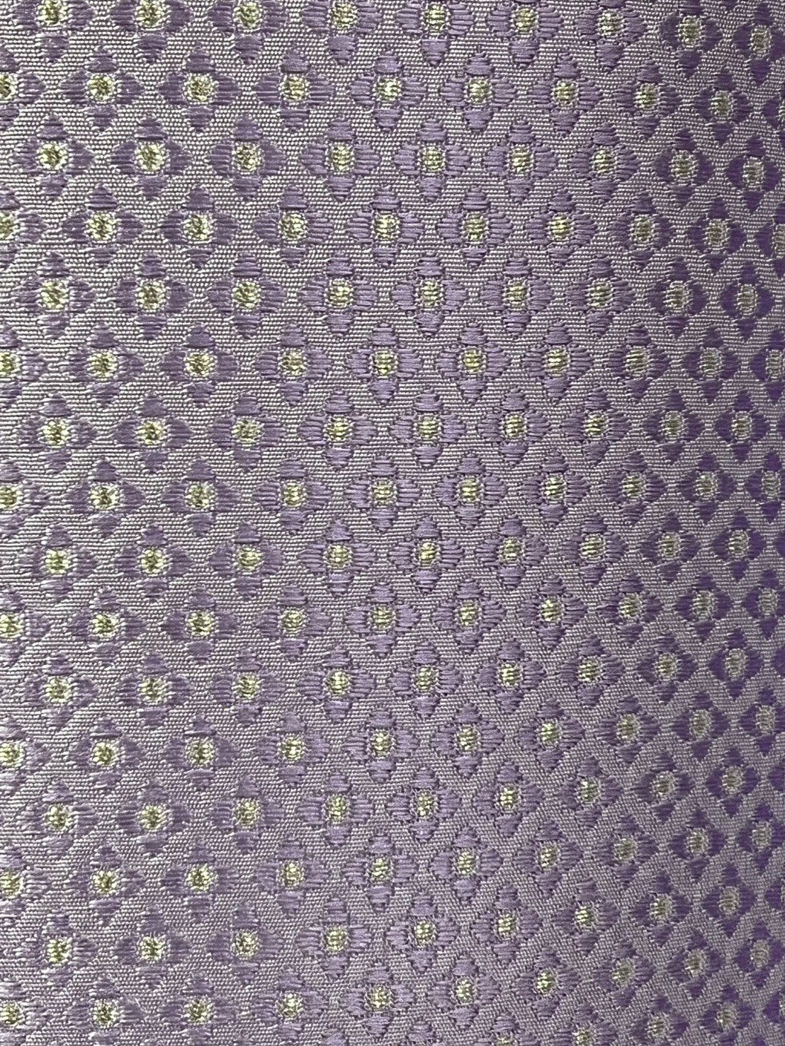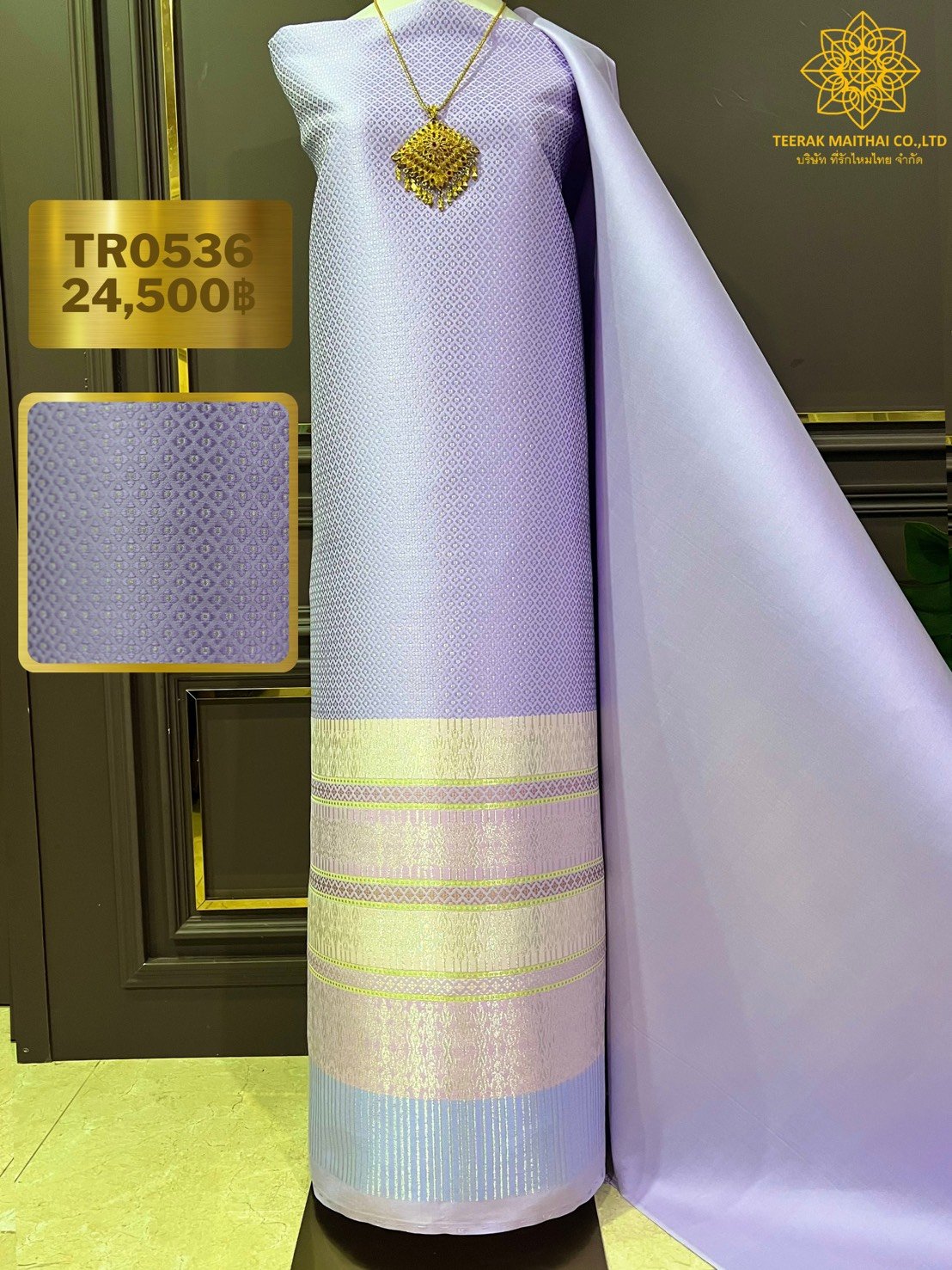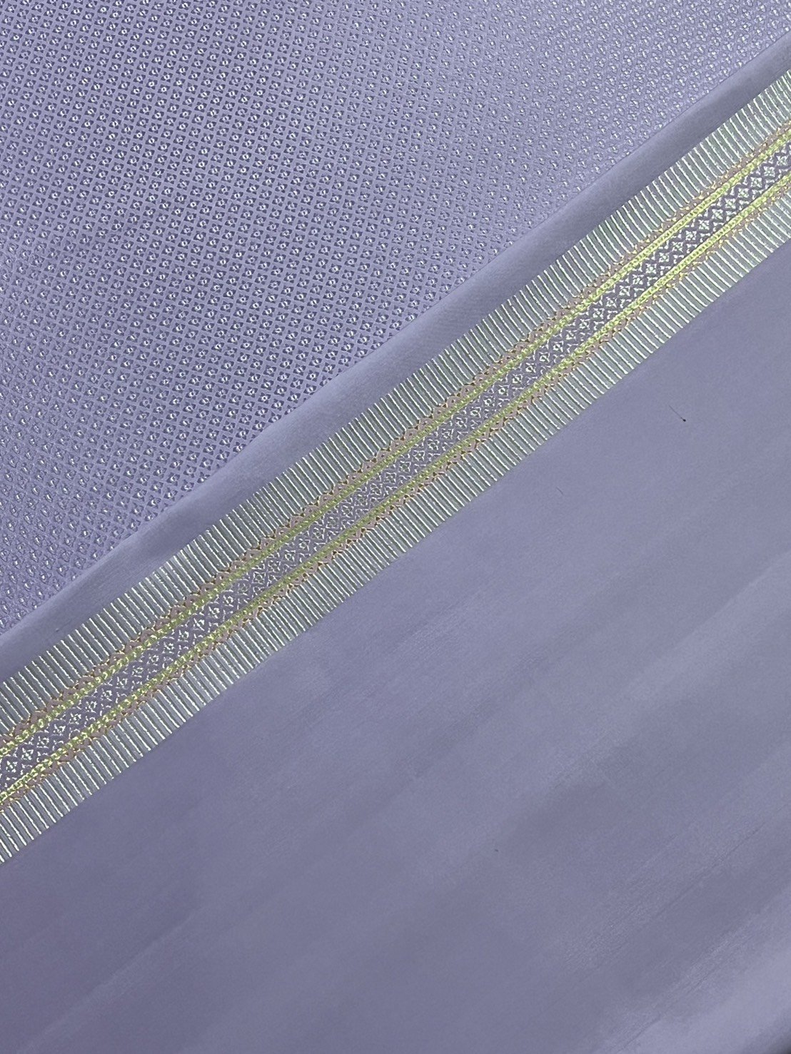 ลายช่อพิกุล ผ้าไหมยกดอกลำพูนสีม่วงพาสเทลเกาะเชิงดิ้นเงิน สอดเกษรดิ้นเงิน