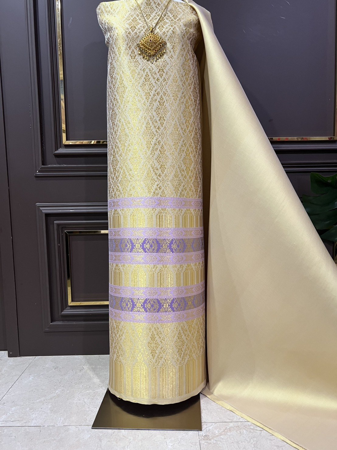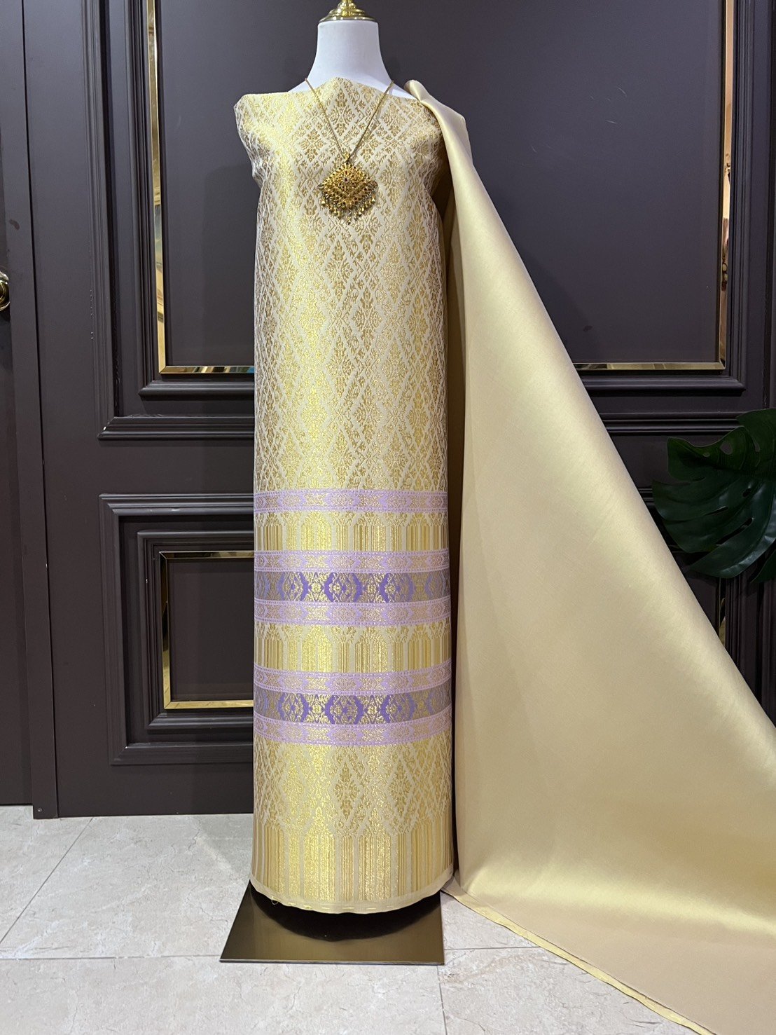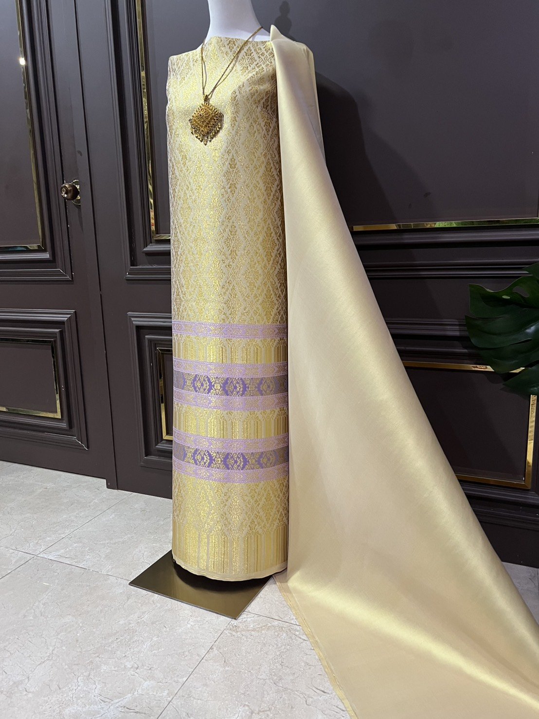 ลายราชสำนัก ยกใหญ่ลำพูนสีเหลือทองยกดอกดิ้นทอง