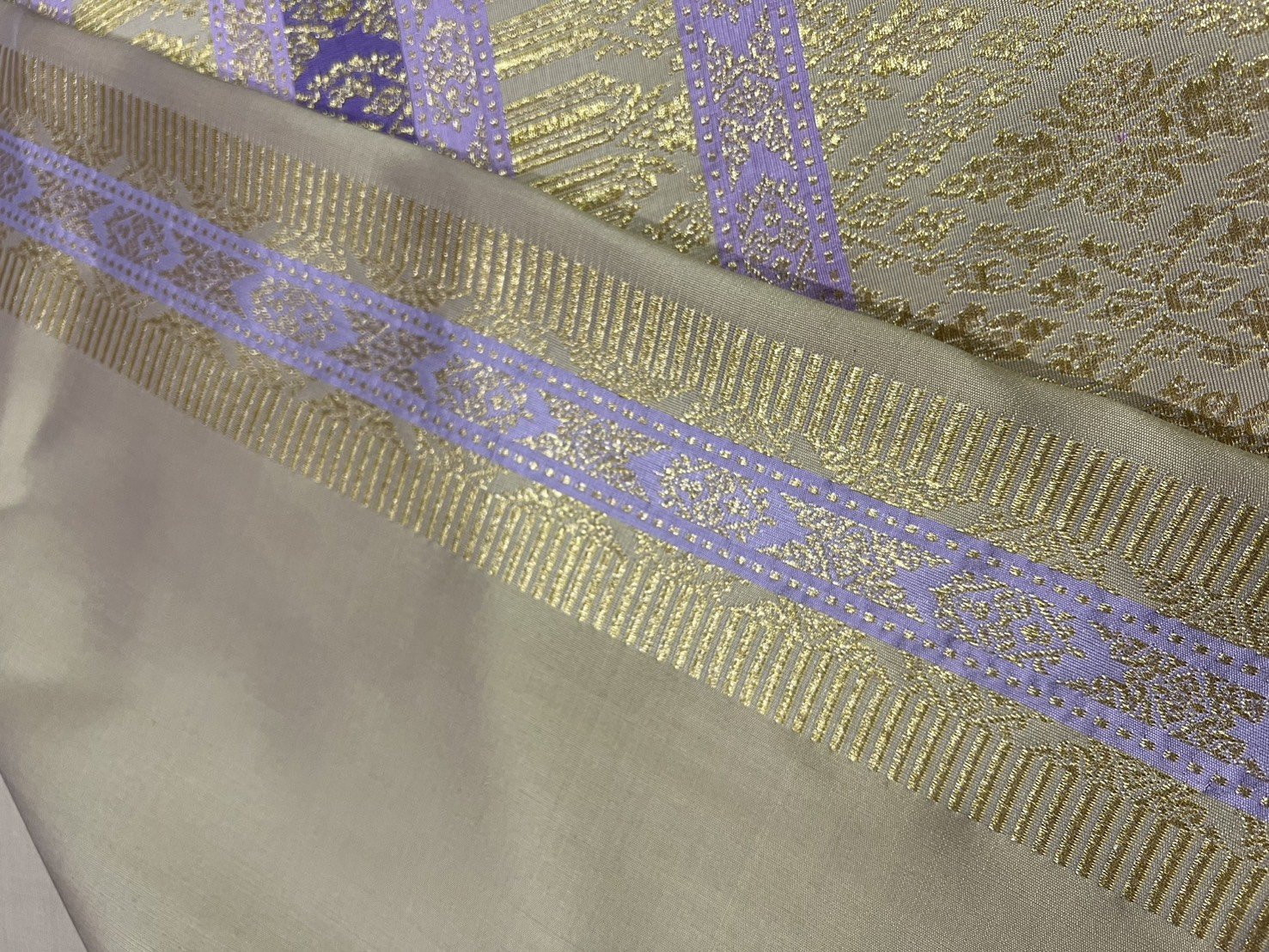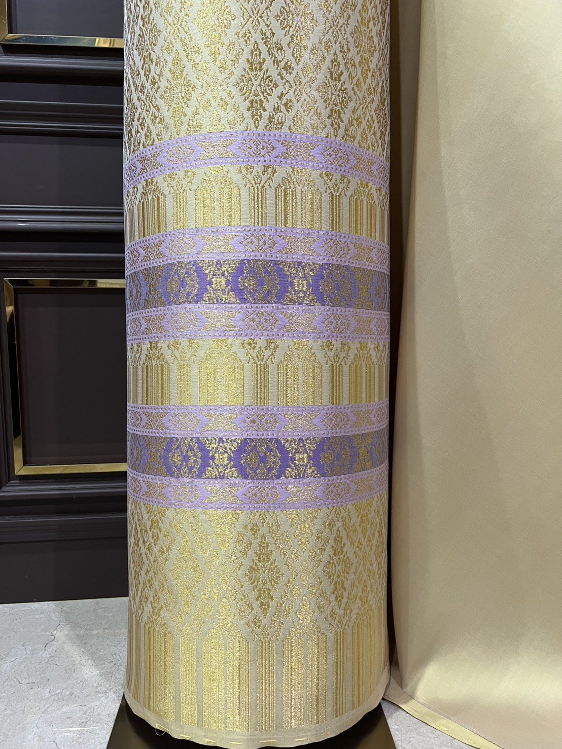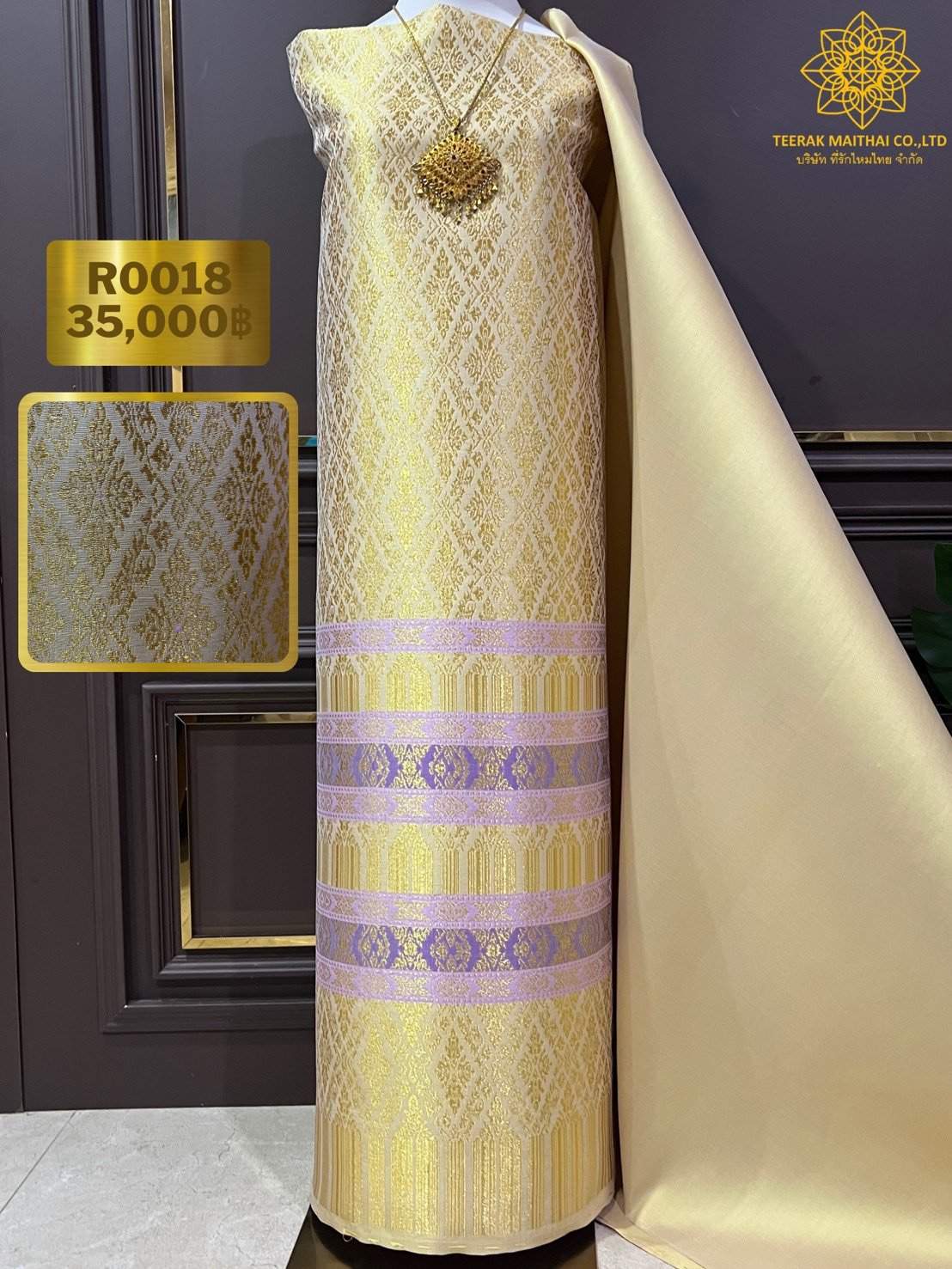 ลายราชสำนัก ยกใหญ่ลำพูนสีเหลือทองยกดอกดิ้นทอง