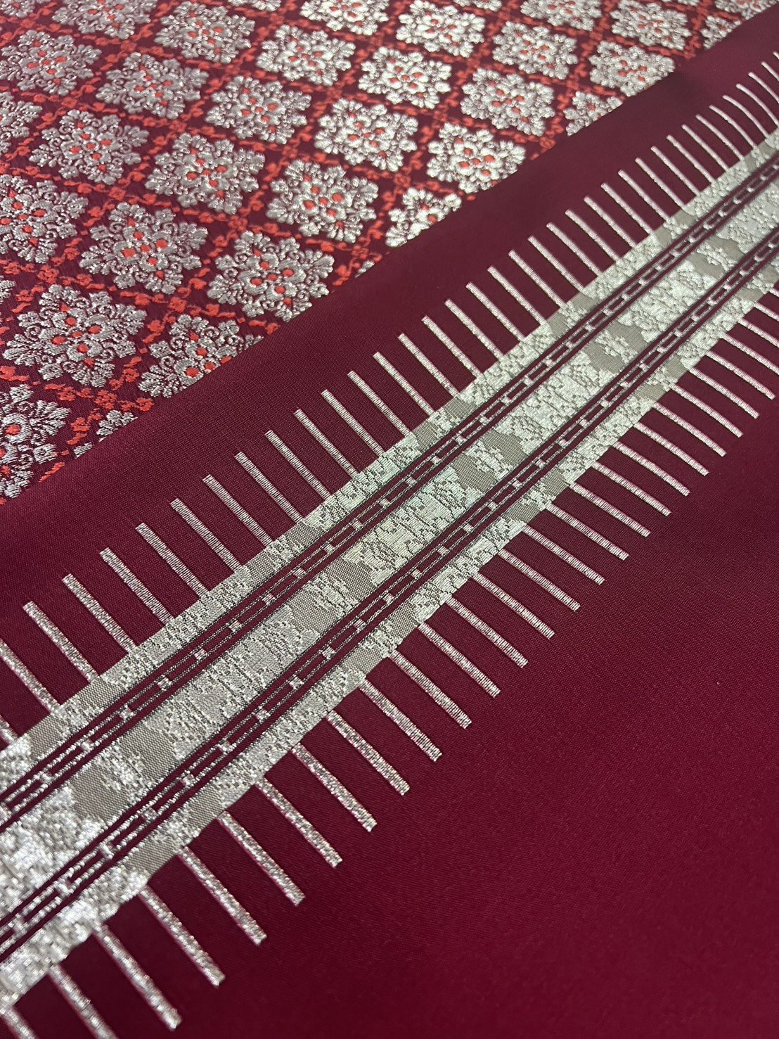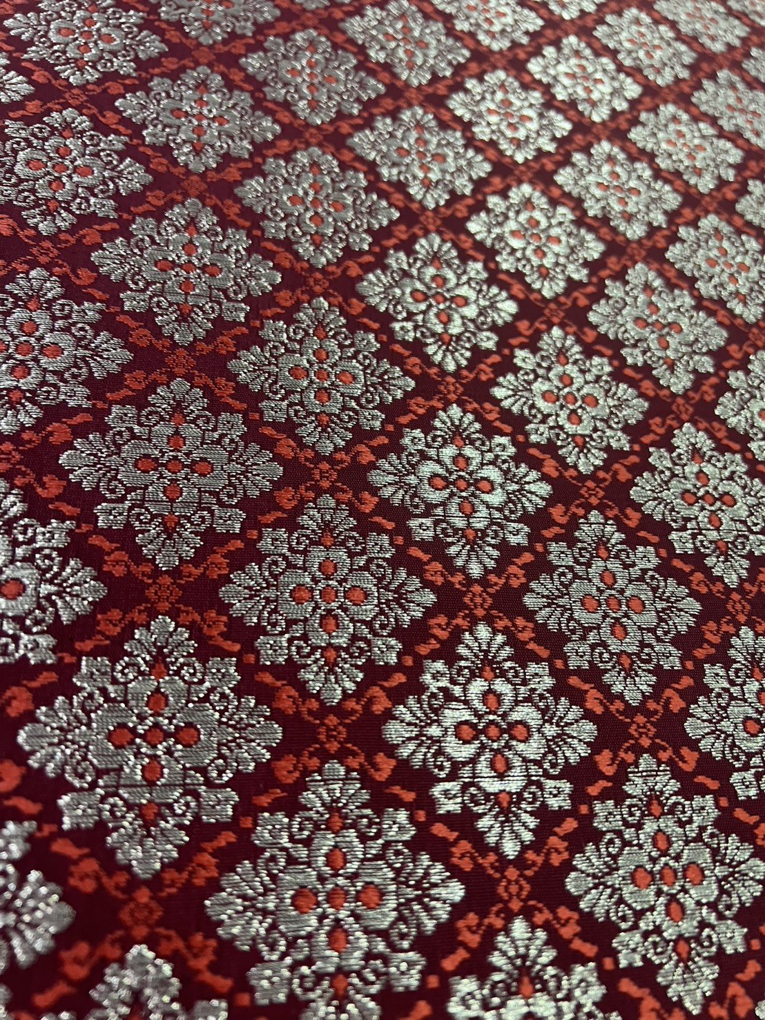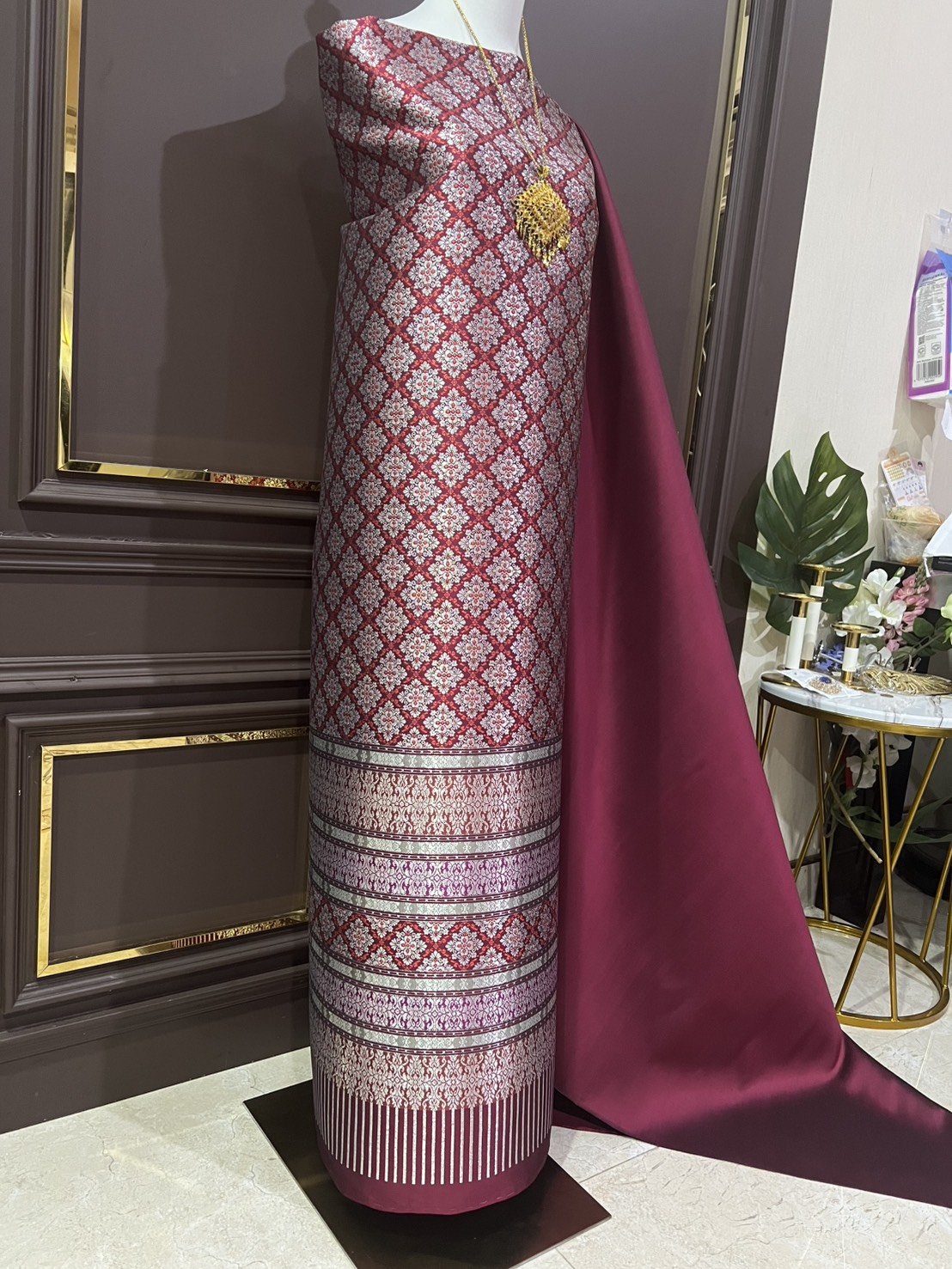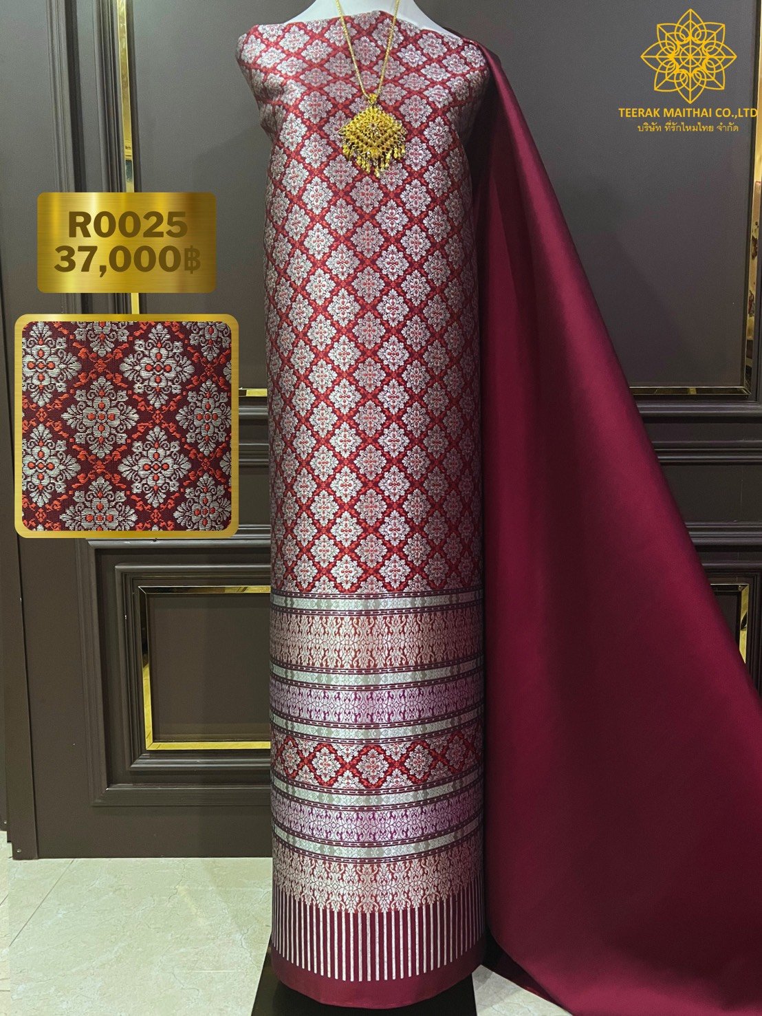 ลายบุปผาภิรมย์ ยกใหญ่ลำพูนสีแดงแยกกาบดิ้นเงินแยกดอกไหมสีแดง