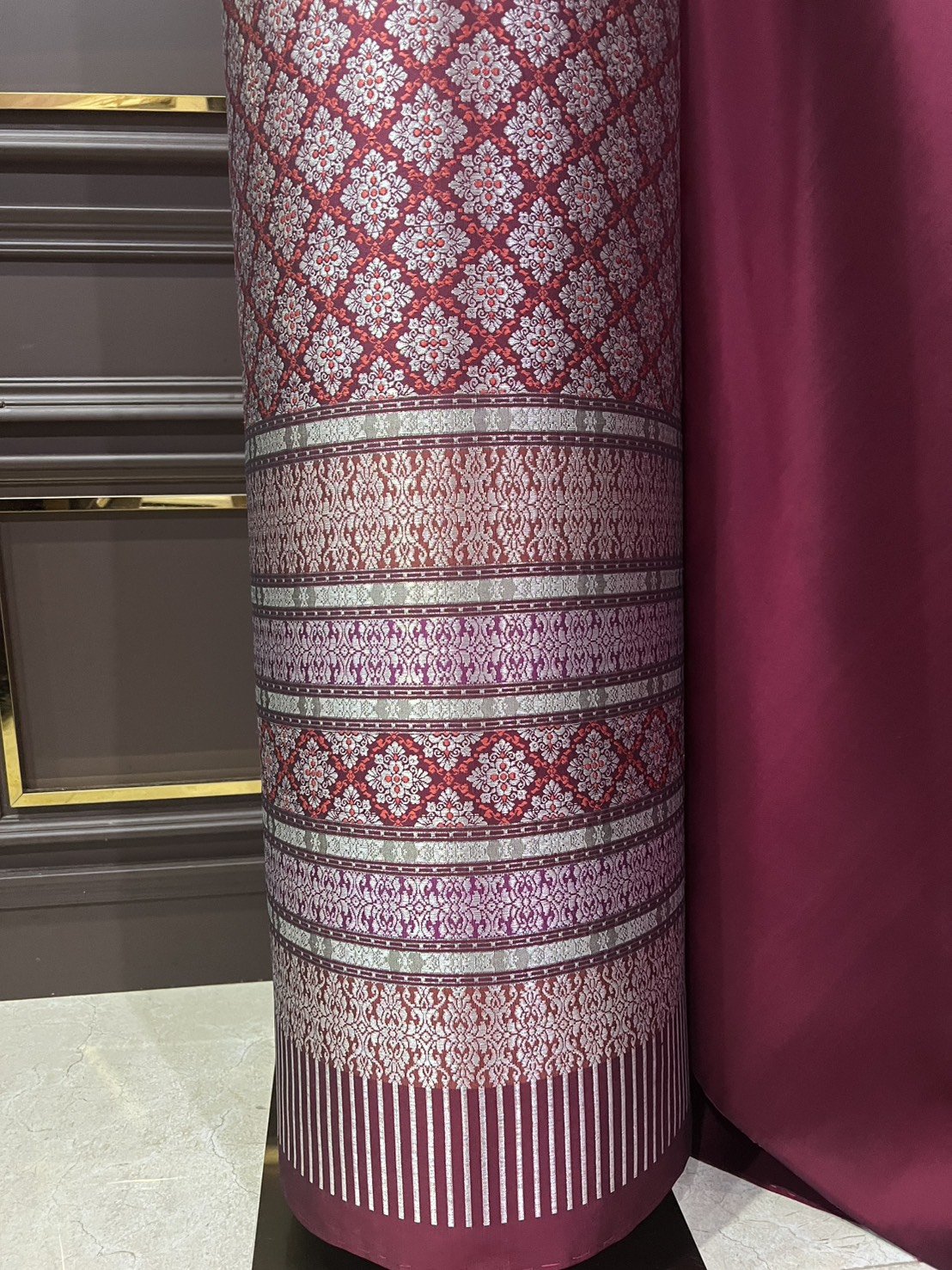 ลายขวัญนารี ยกใหญ่ลำพูนสีม่วงพระราชินียกดอกดิ้นเงิน