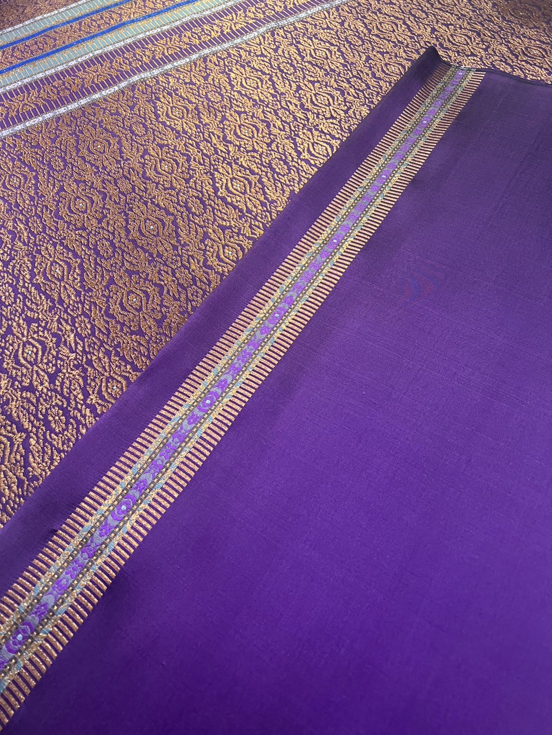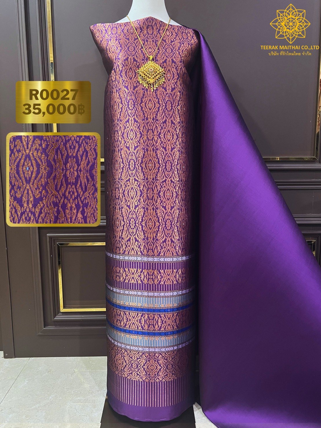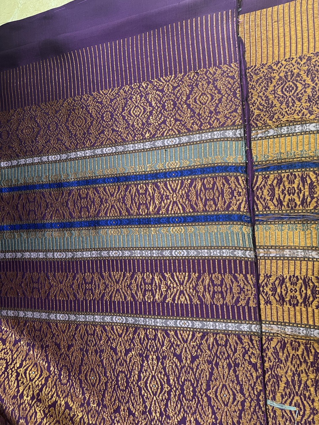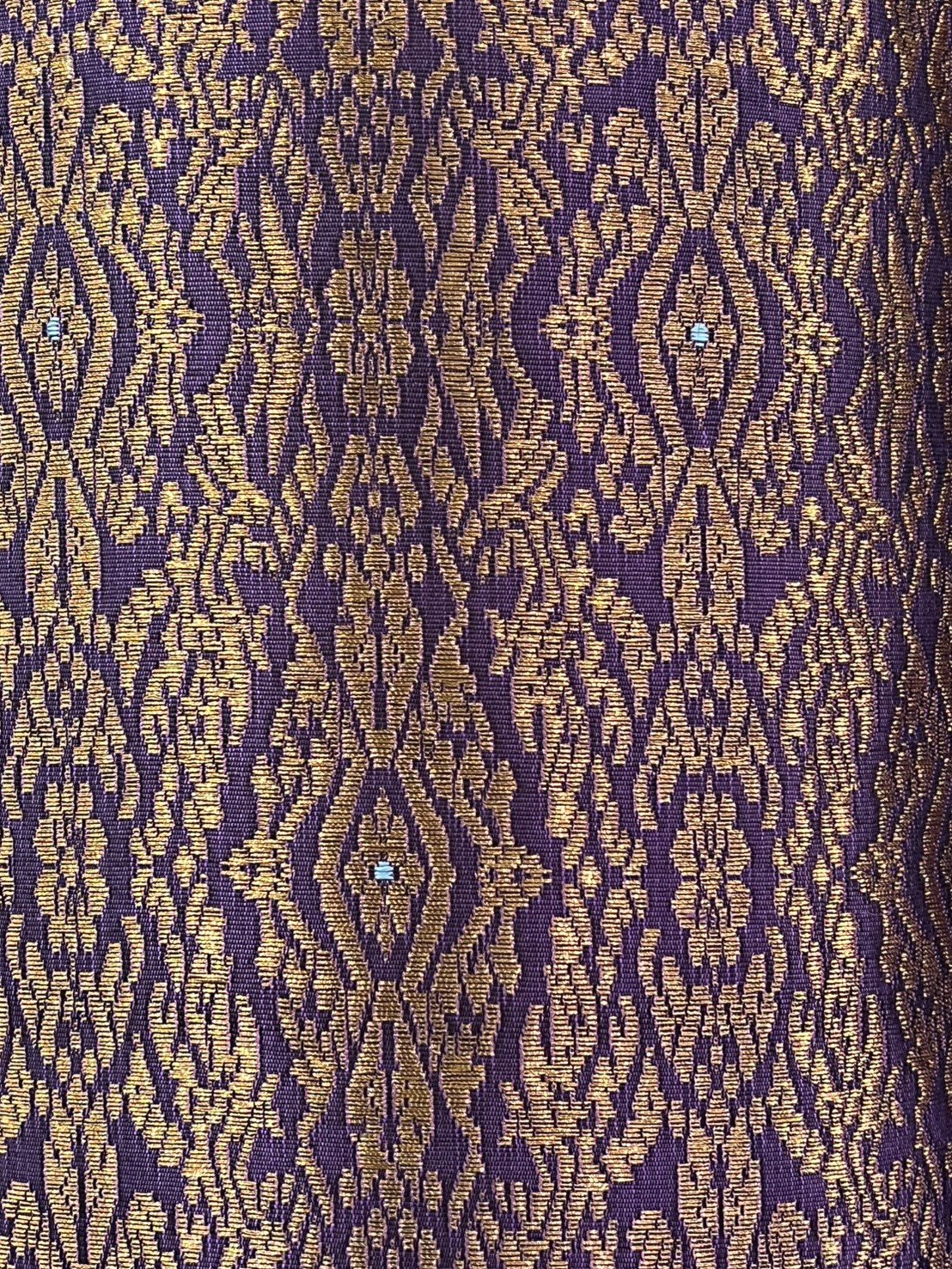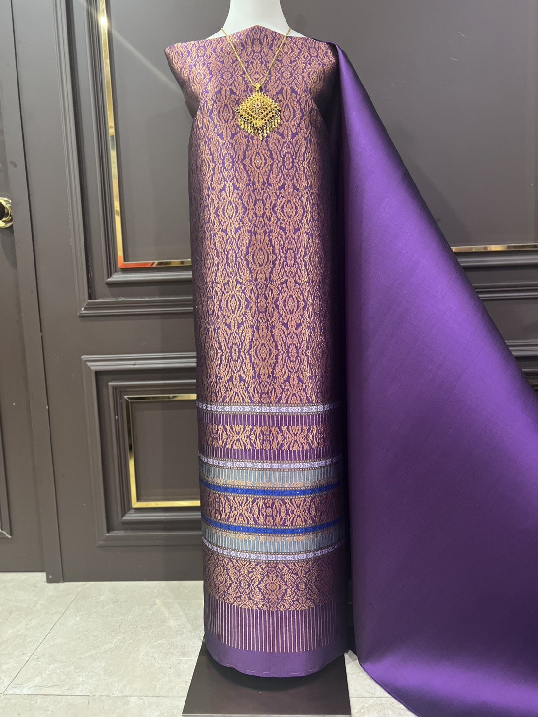 ลายอินเดีย ยกใหญ่ลำพูนสีม่วงพระเทพยกดอกดิ้นสีนาค