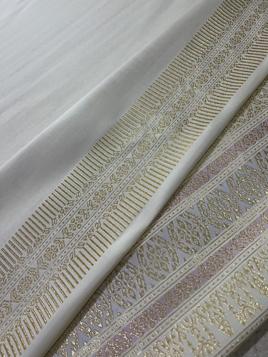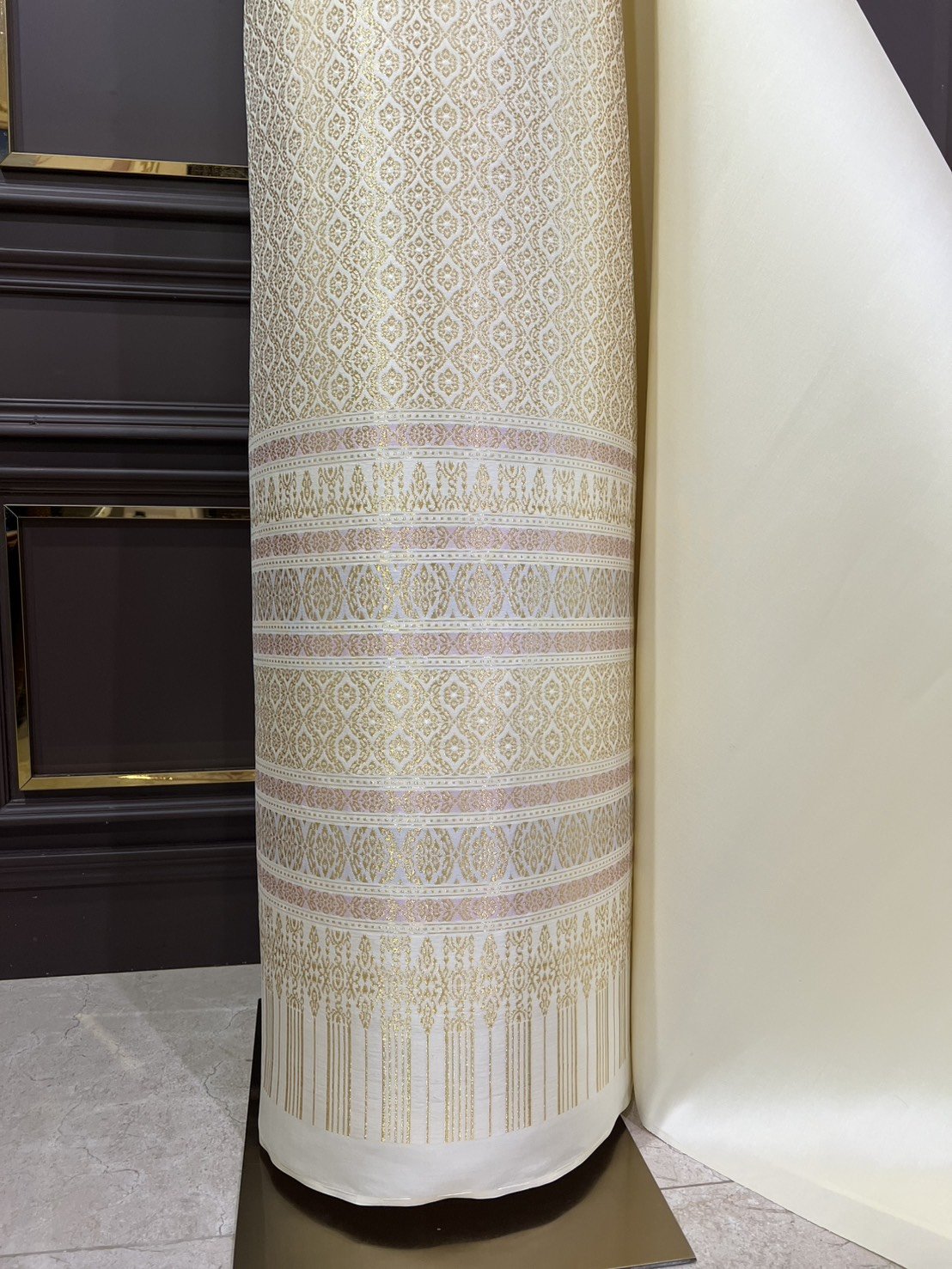 ลายสุริยะฉาย ผ้าไหมยกใหญ่ลำพูนสีขาวออฟไวท์ยกดอกดิ้นเงิน