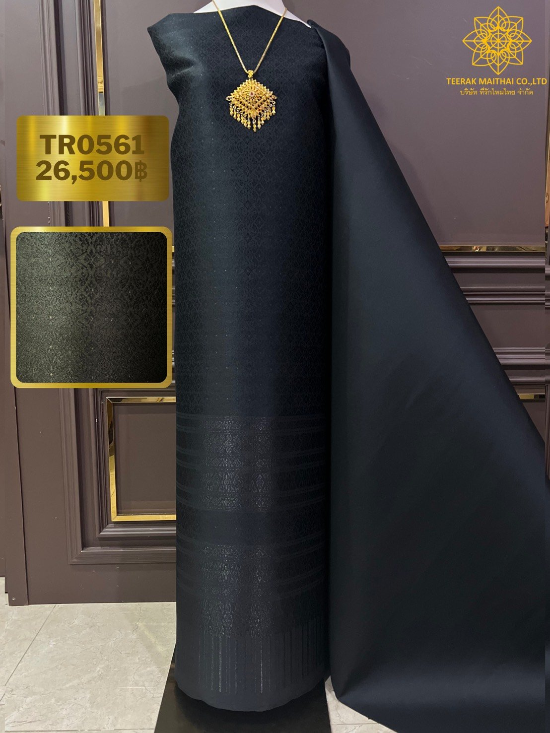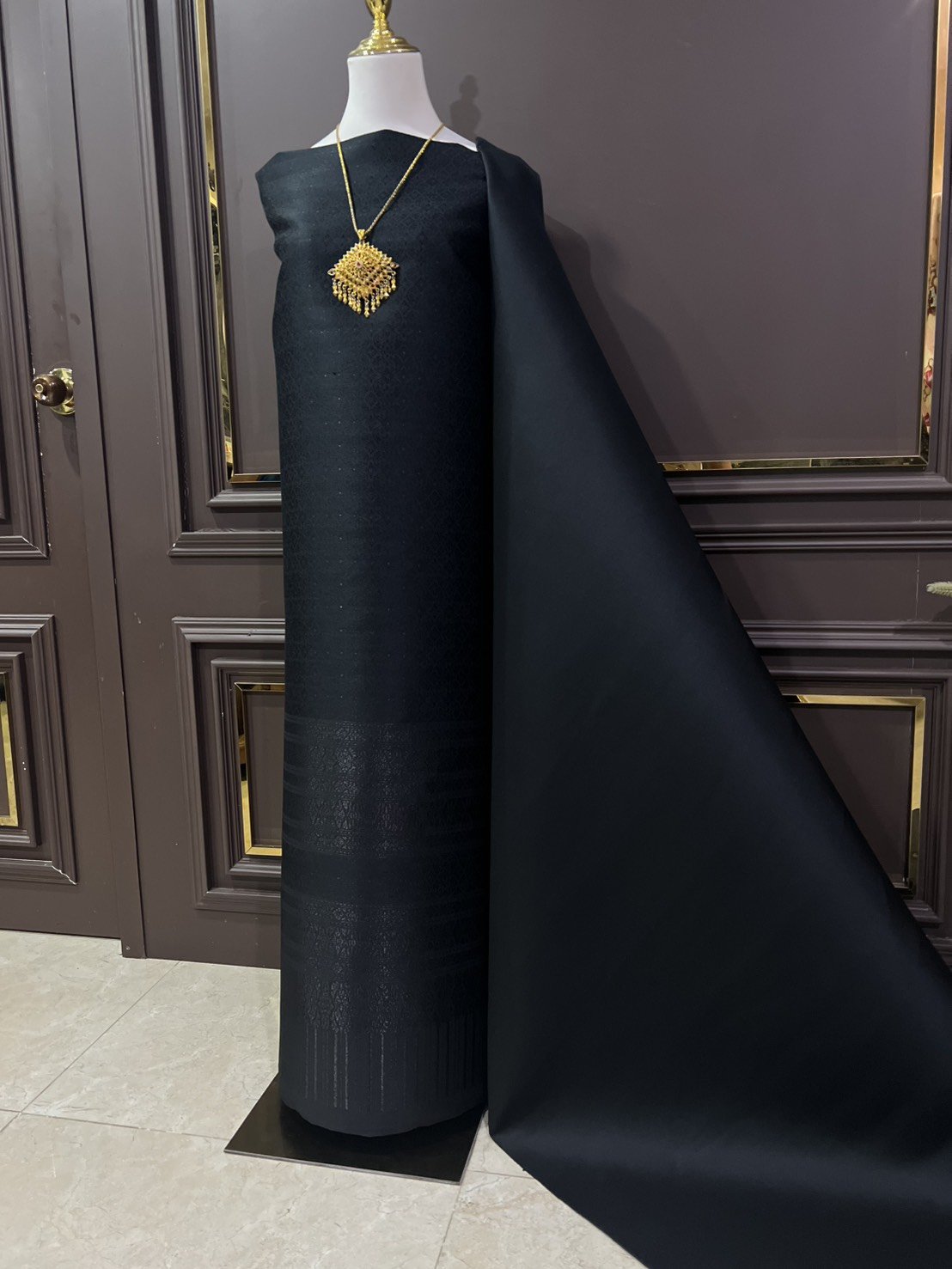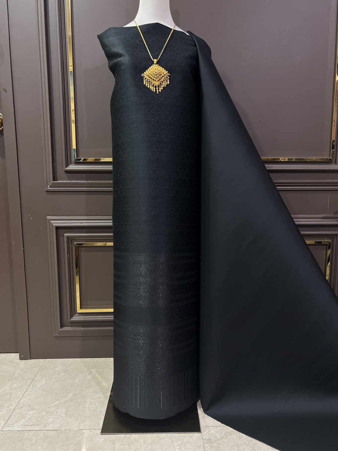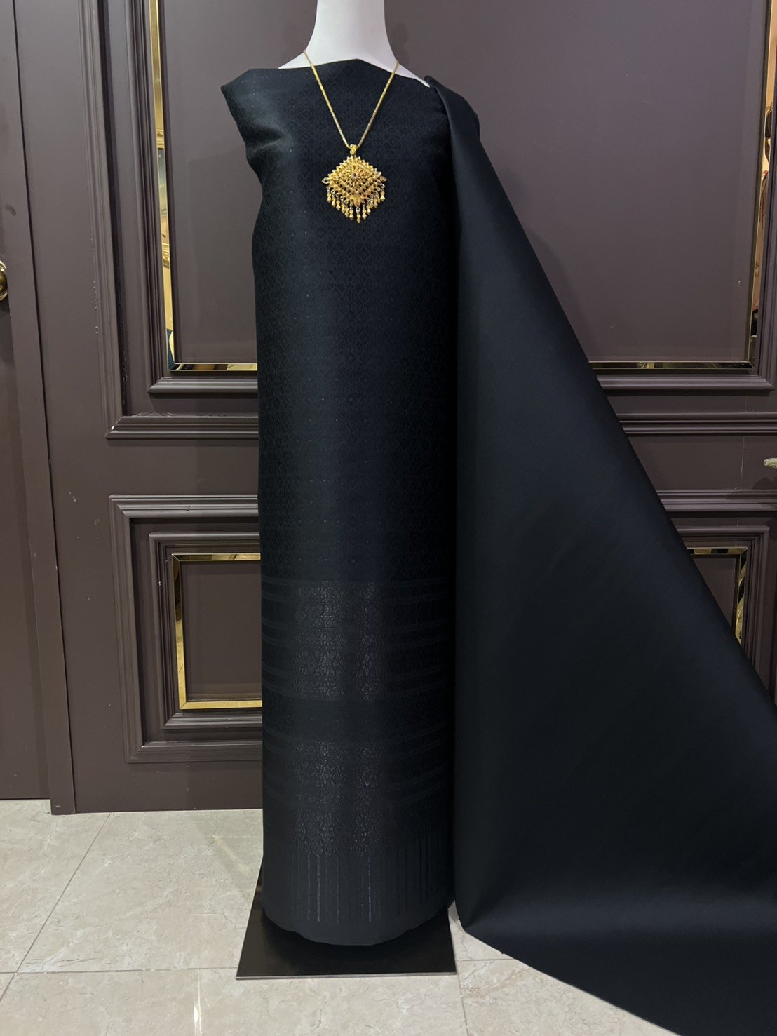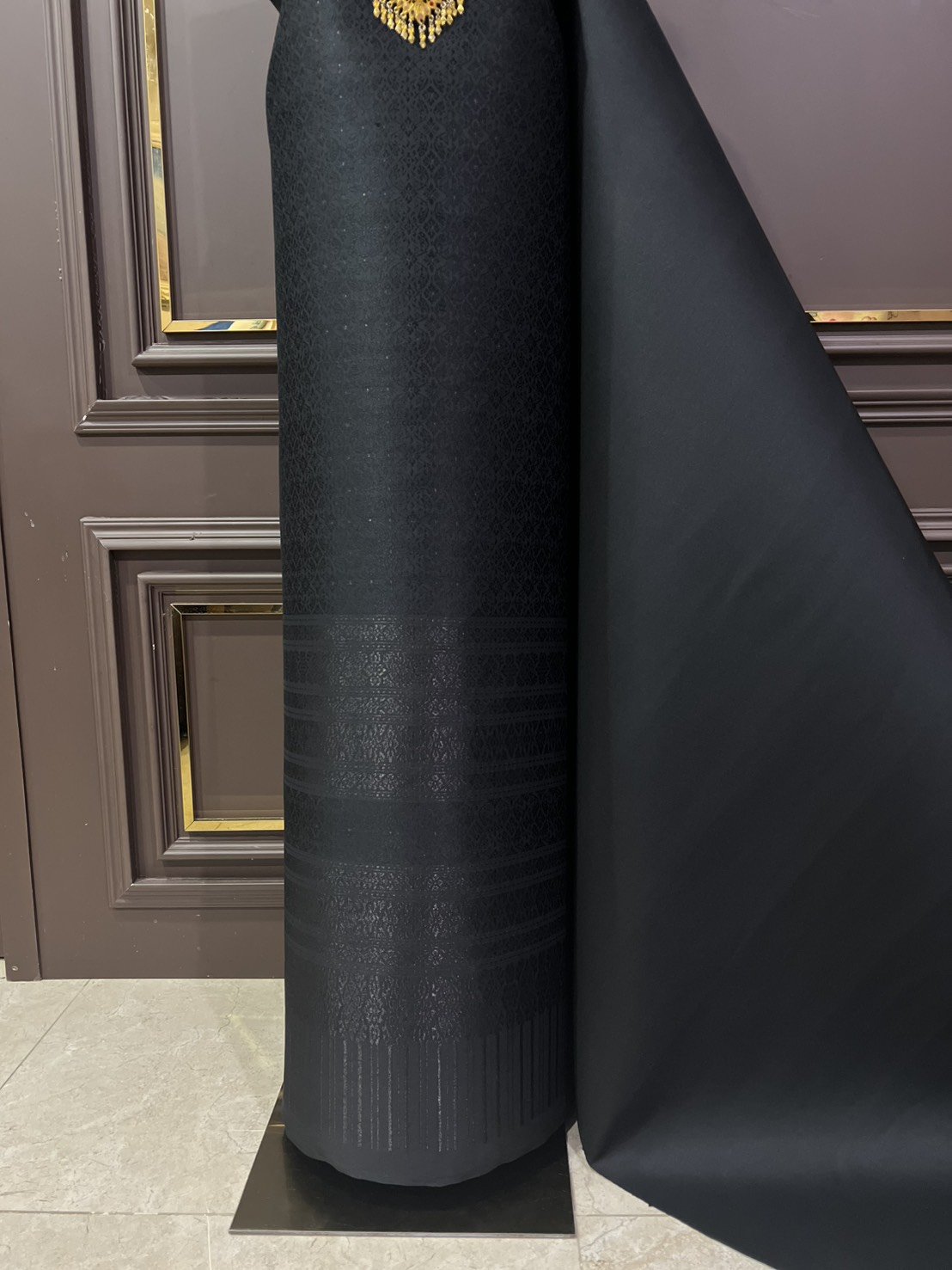 ลายราชสำนัก ยกใหญ่ลำพูนสีดำเกาะเชิงดิ้นดำ