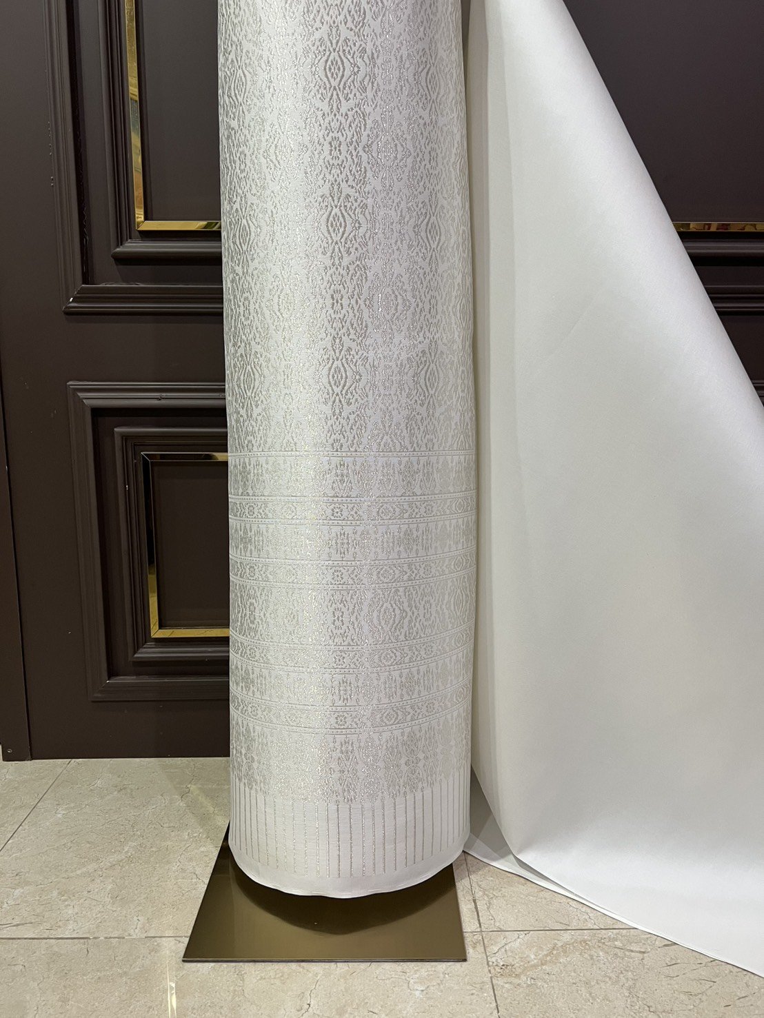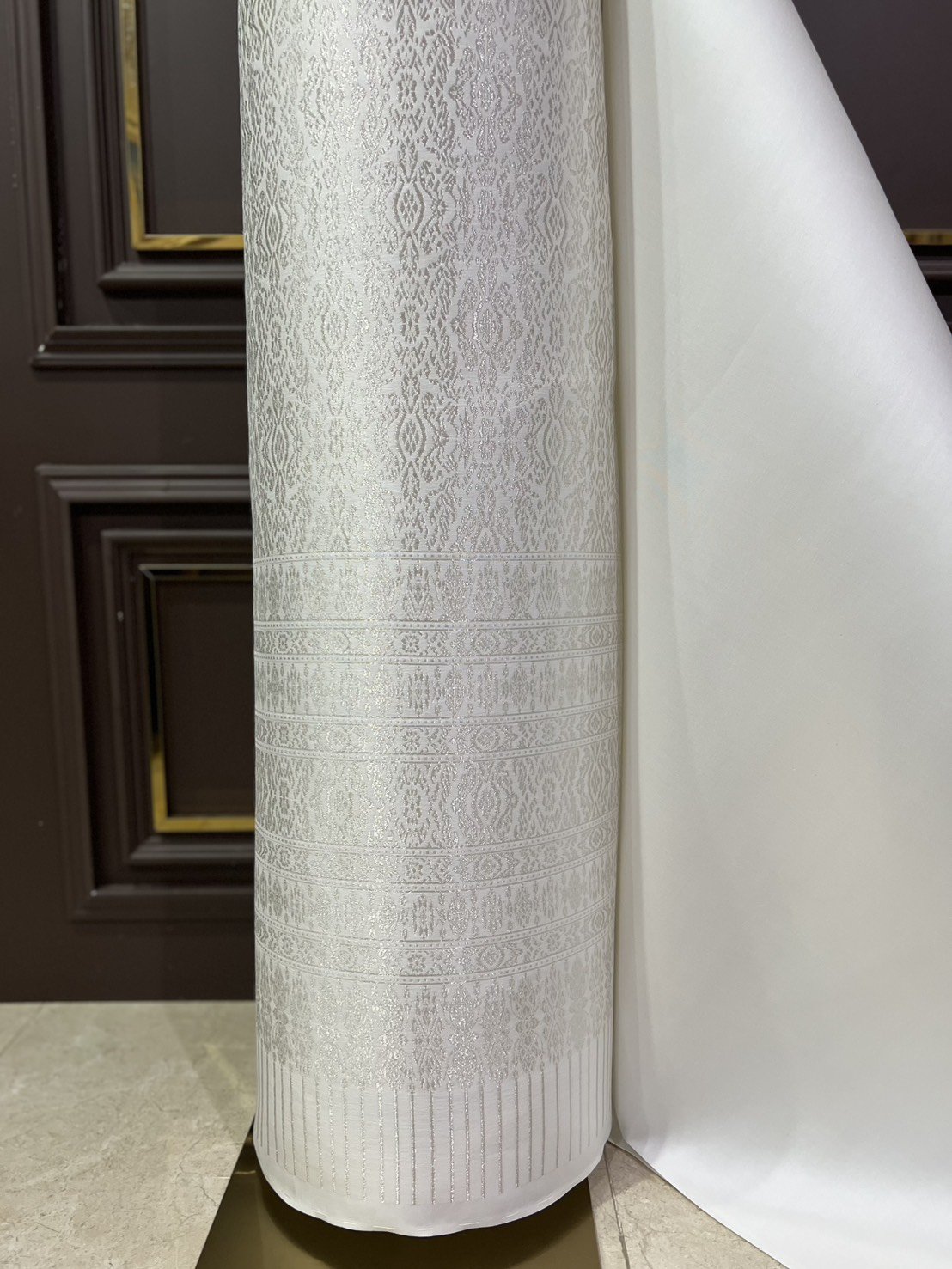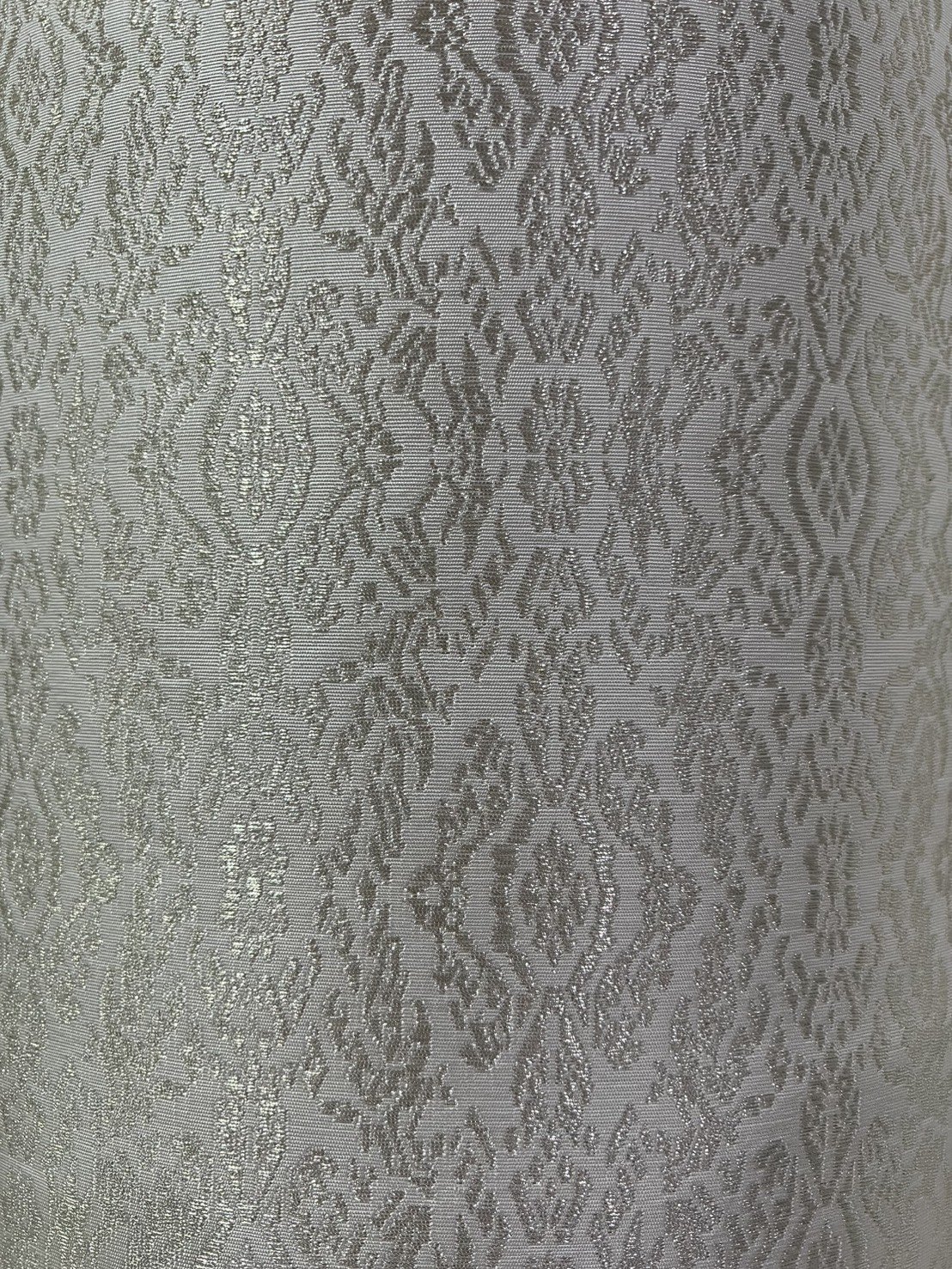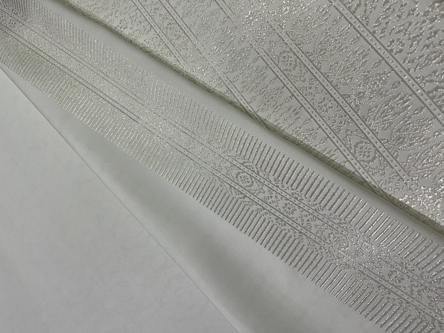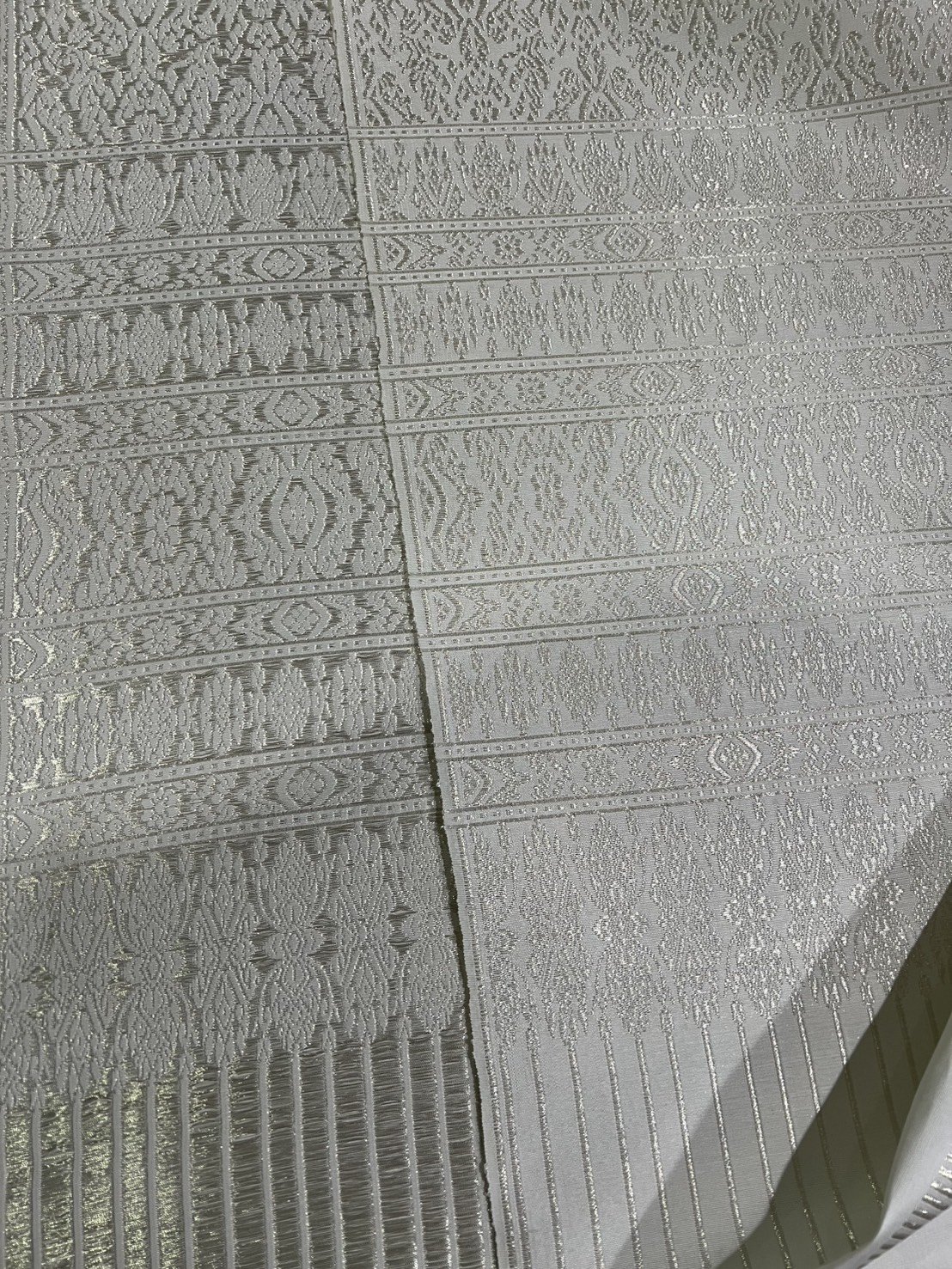 ลายสุริยะฉาย ผ้าไหมยกใหญ่ลำพูนสีขาวออฟไวท์ยกดอกดิ้นเงิน