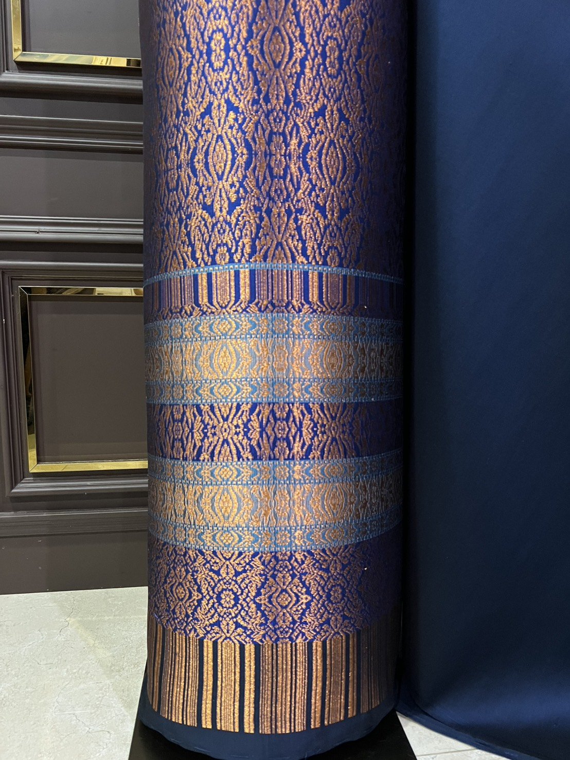 ลายอินเดีย ยกใหญ่ลำพูนสีกรมยกดอกดิ้นสีนาค