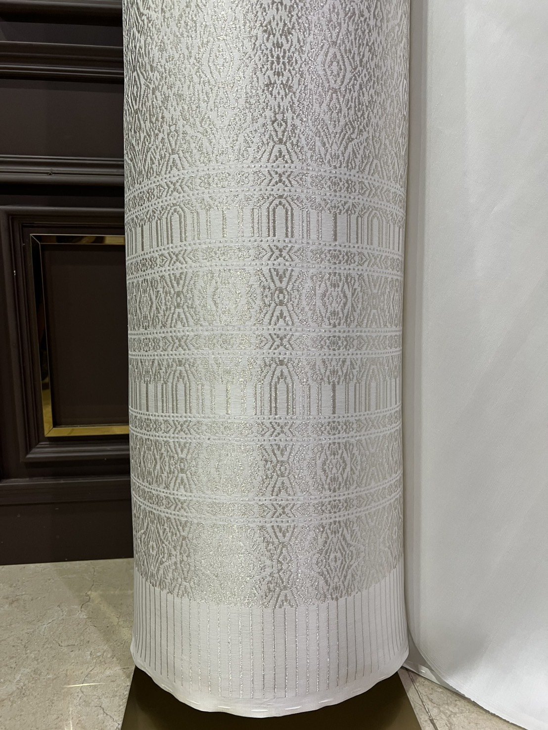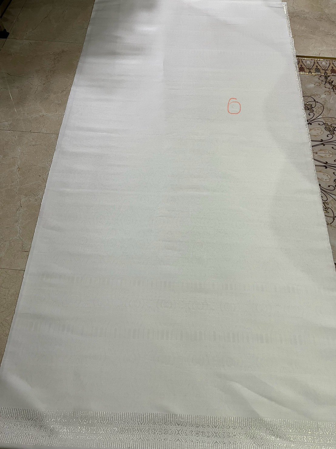 *มีตำหนิผ้าพื้น ลายอินเดียผ้าไหมยกดอกลำพูนสีขาวออฟไวท์ยกดอกดิ้นเงิน