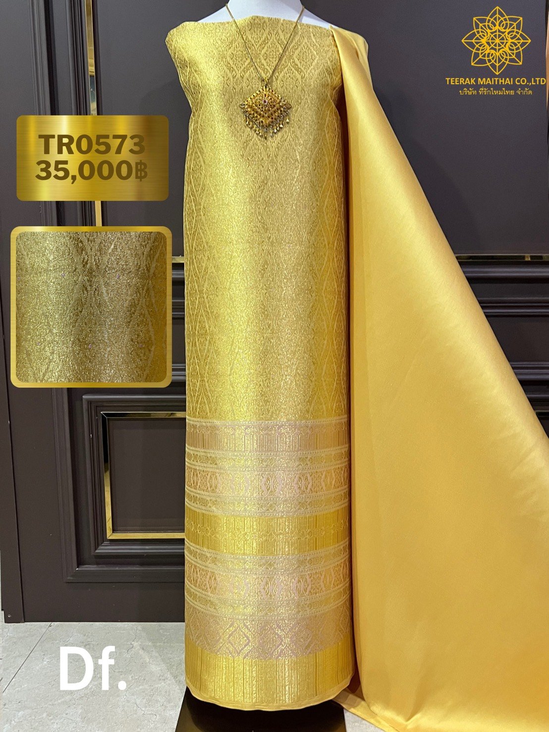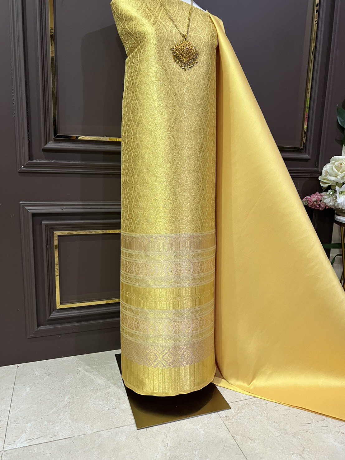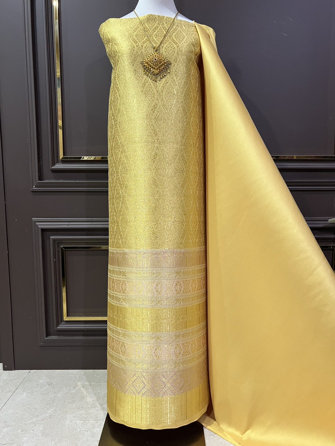*มีตำหนิเชิงไม่ตรง ลายวิจิตรพรรณ ยกใหญ่ลำพูนสีเหลืองทอง