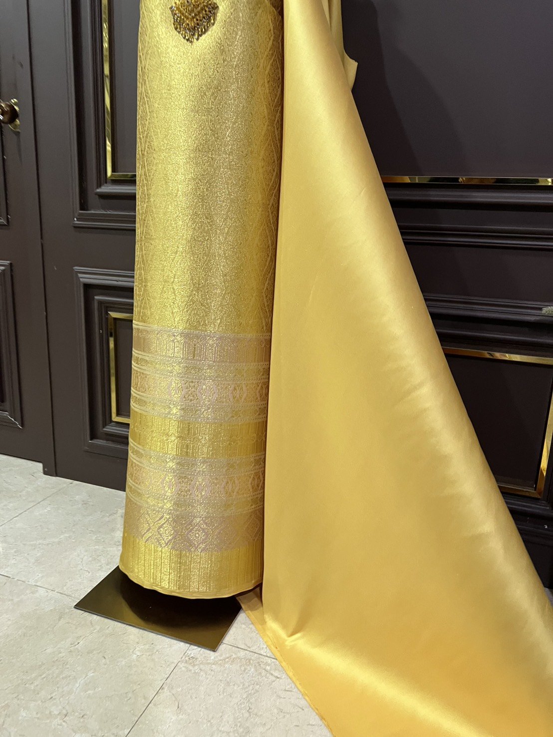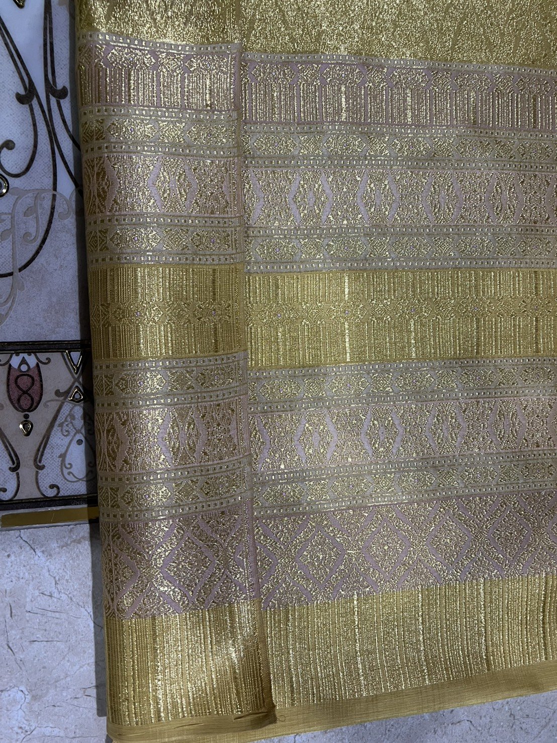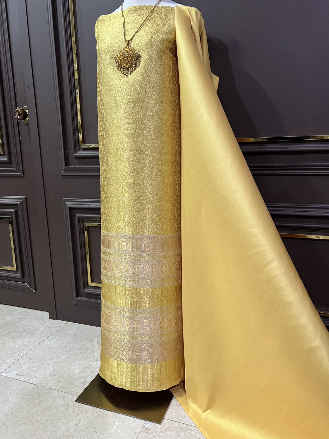*มีตำหนิเชิงไม่ตรง ลายวิจิตรพรรณ ยกใหญ่ลำพูนสีเหลืองทอง