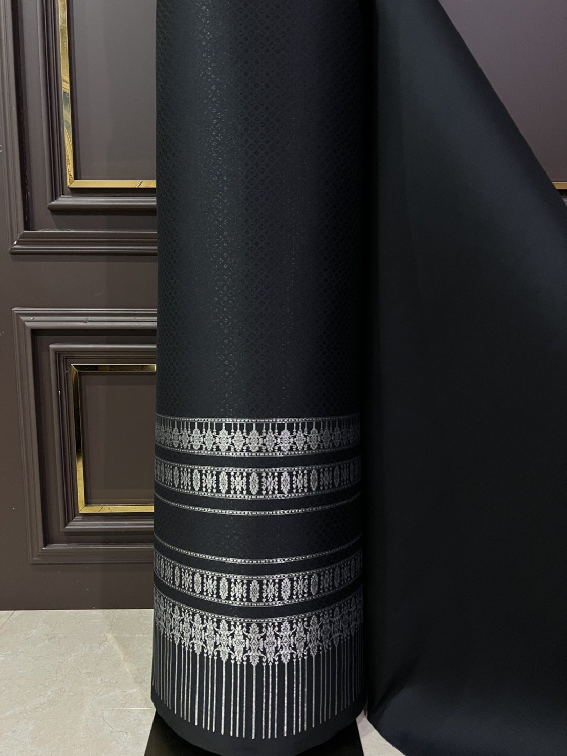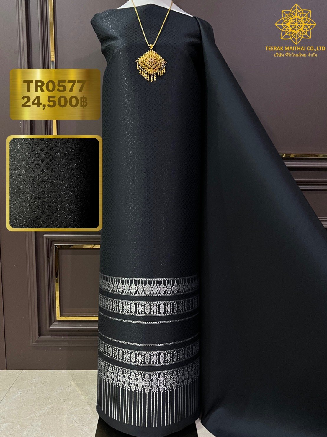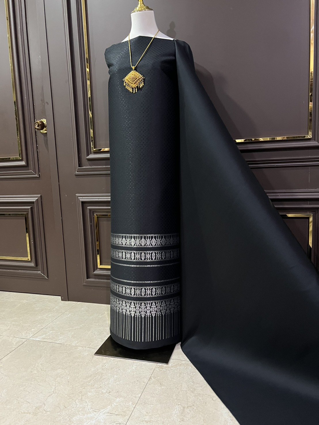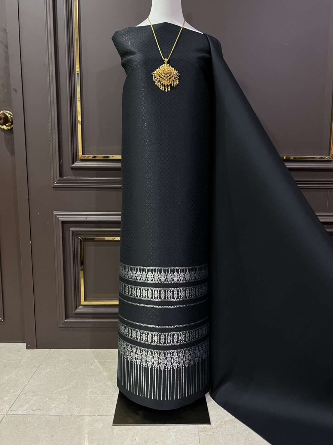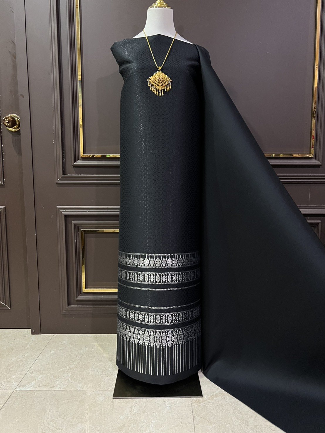 ผ้าไหมลำพูนสีดำดิ้นเงิน