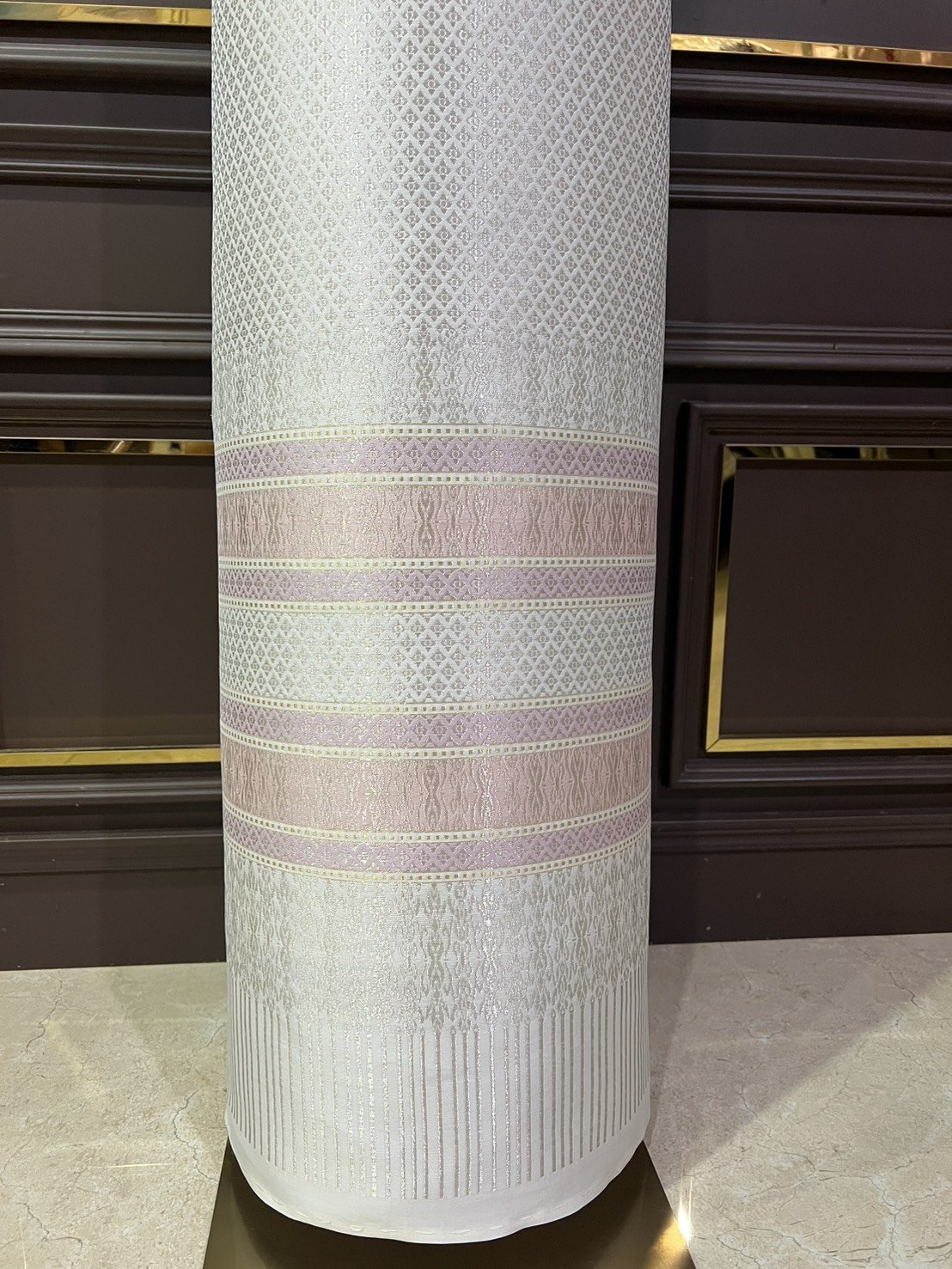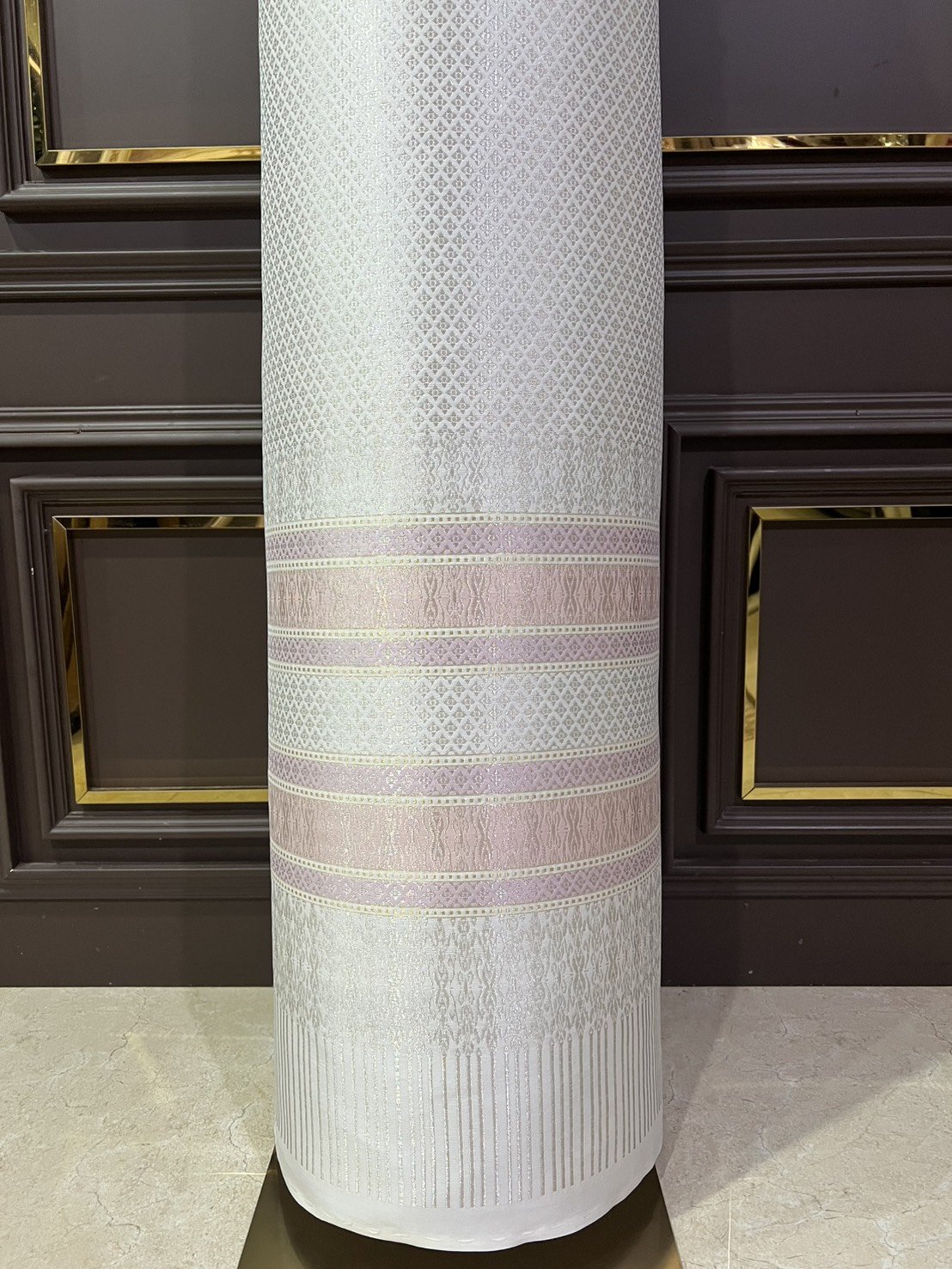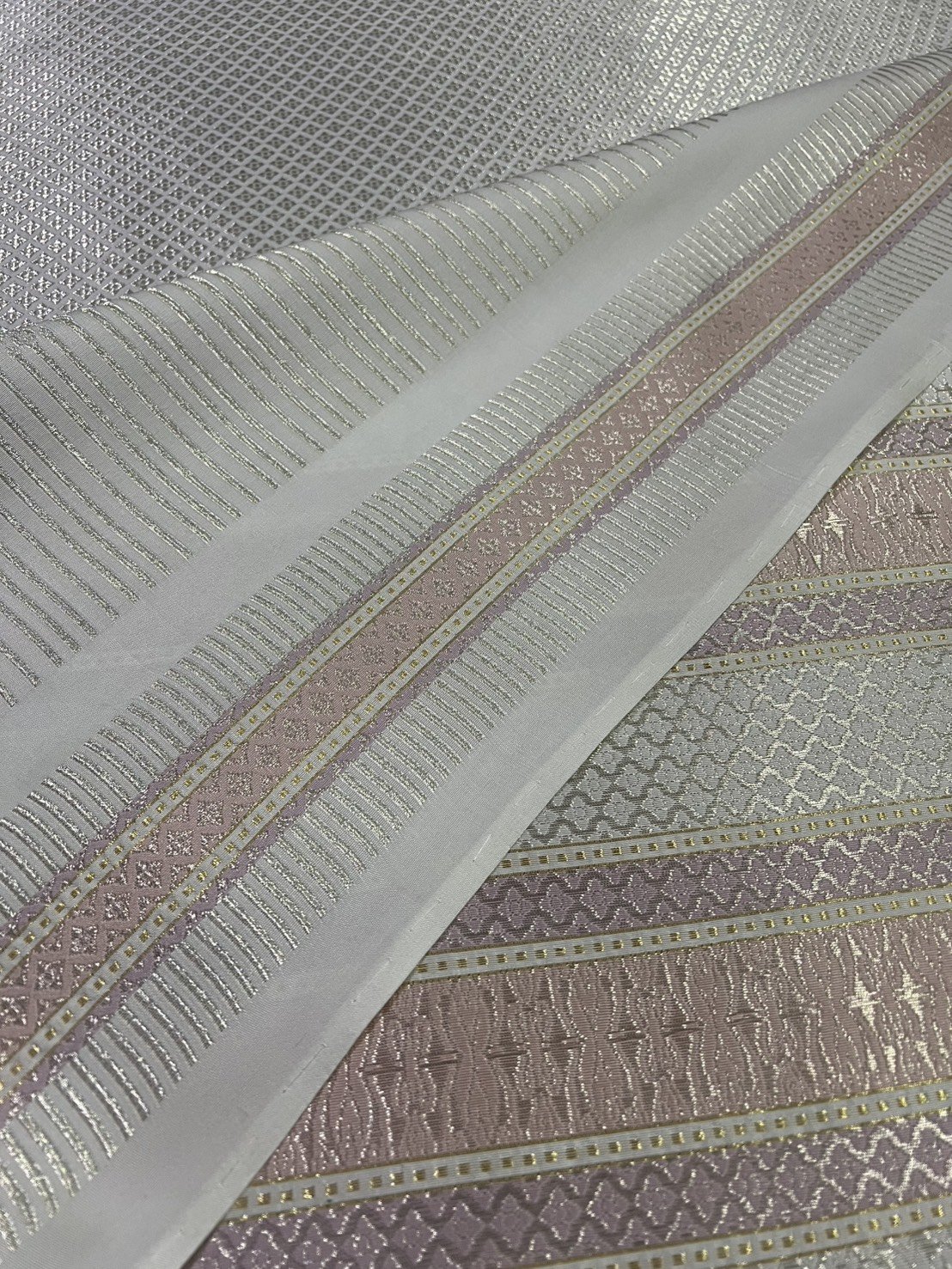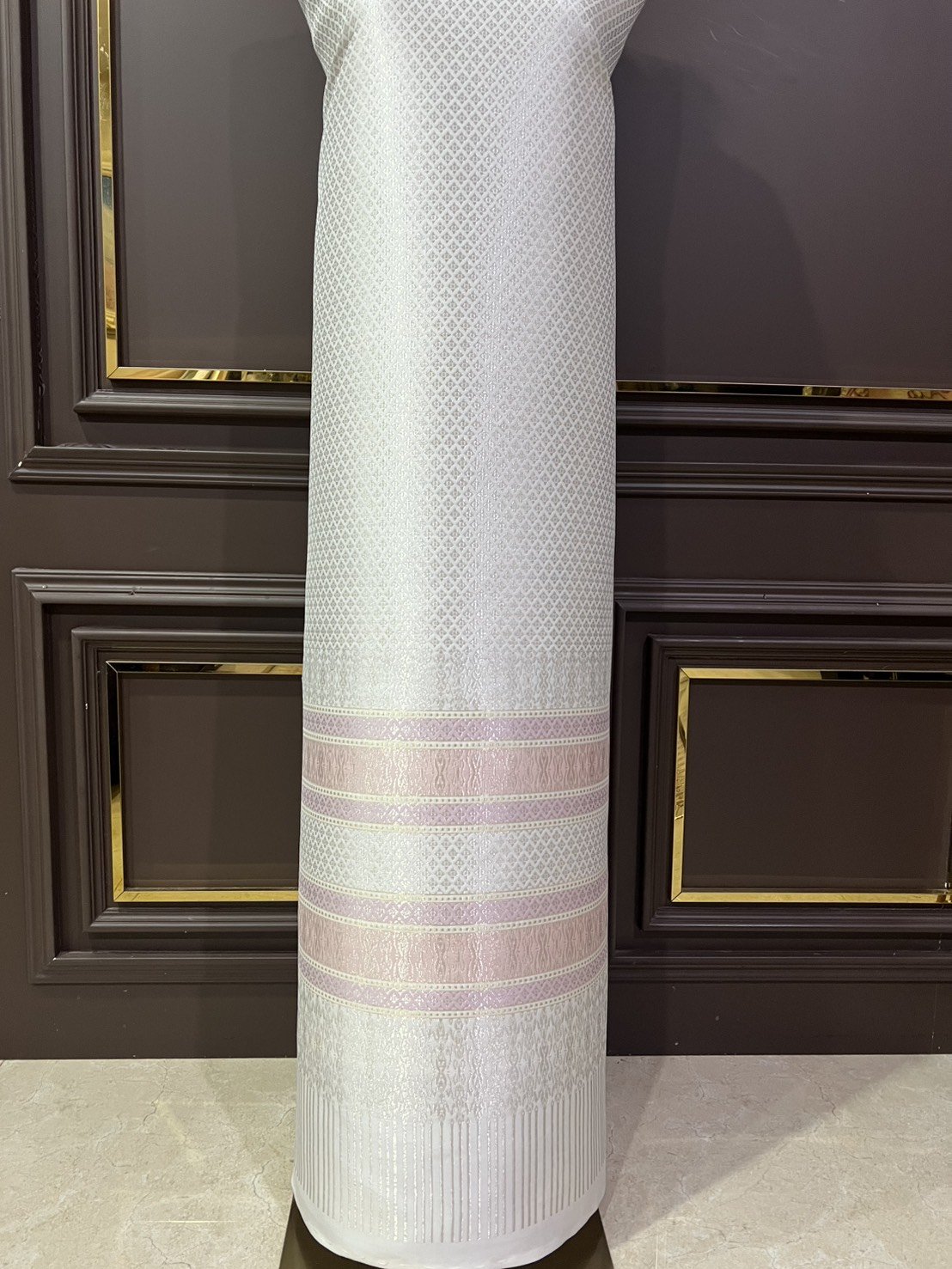 ลายพระราชสำนัก ยกใหญ่ลำพูนสีขาวออฟไวท์เกาะเชิงดิ้นเงินดอกข้อดิ้นทอง
