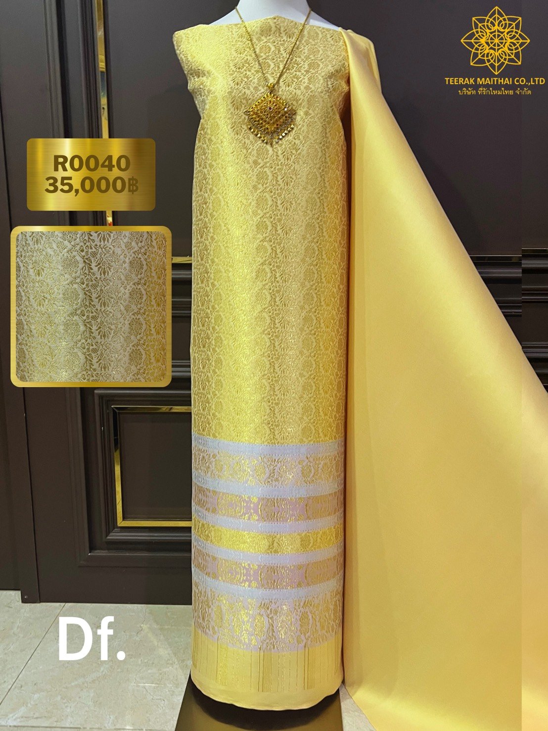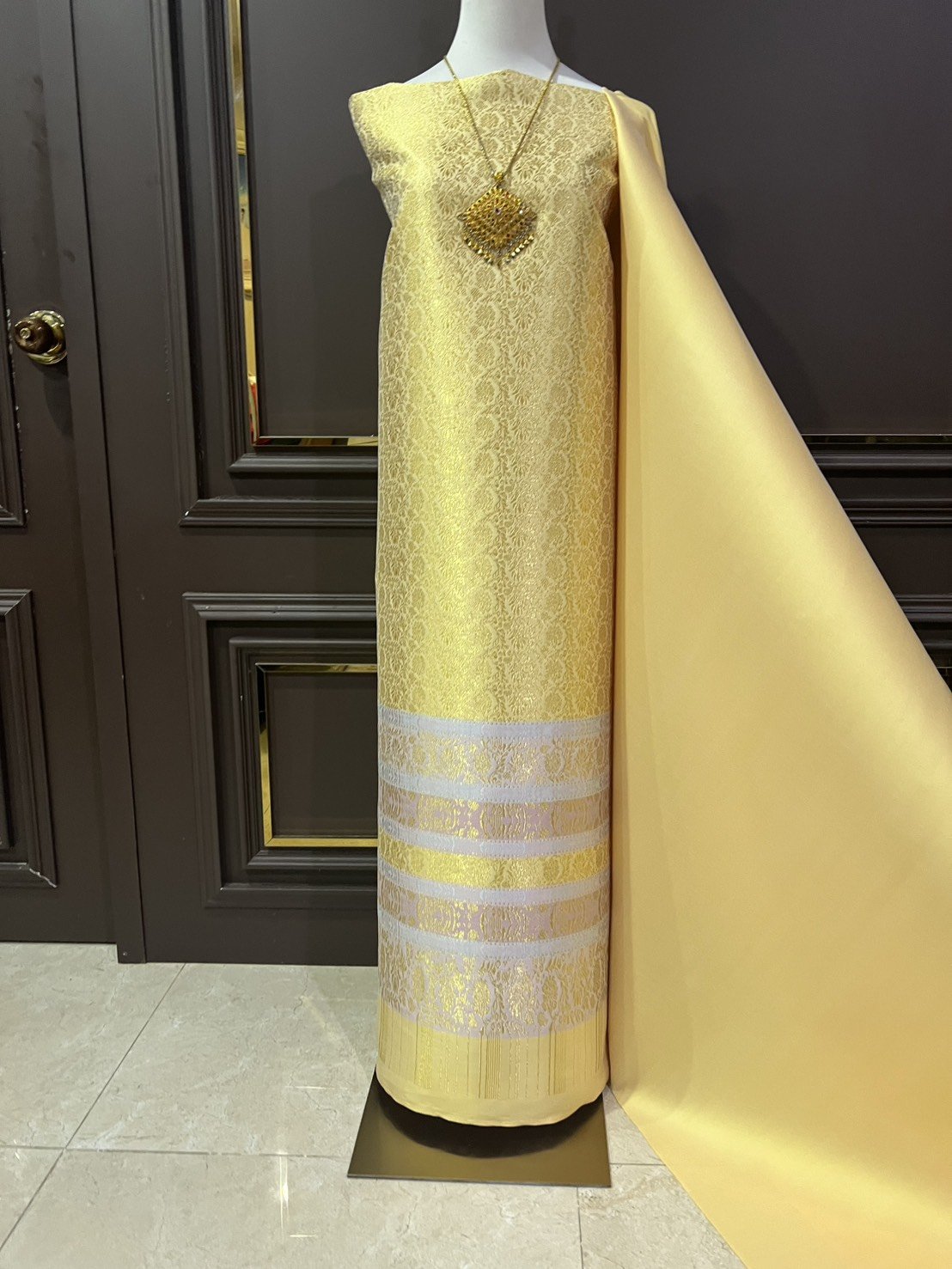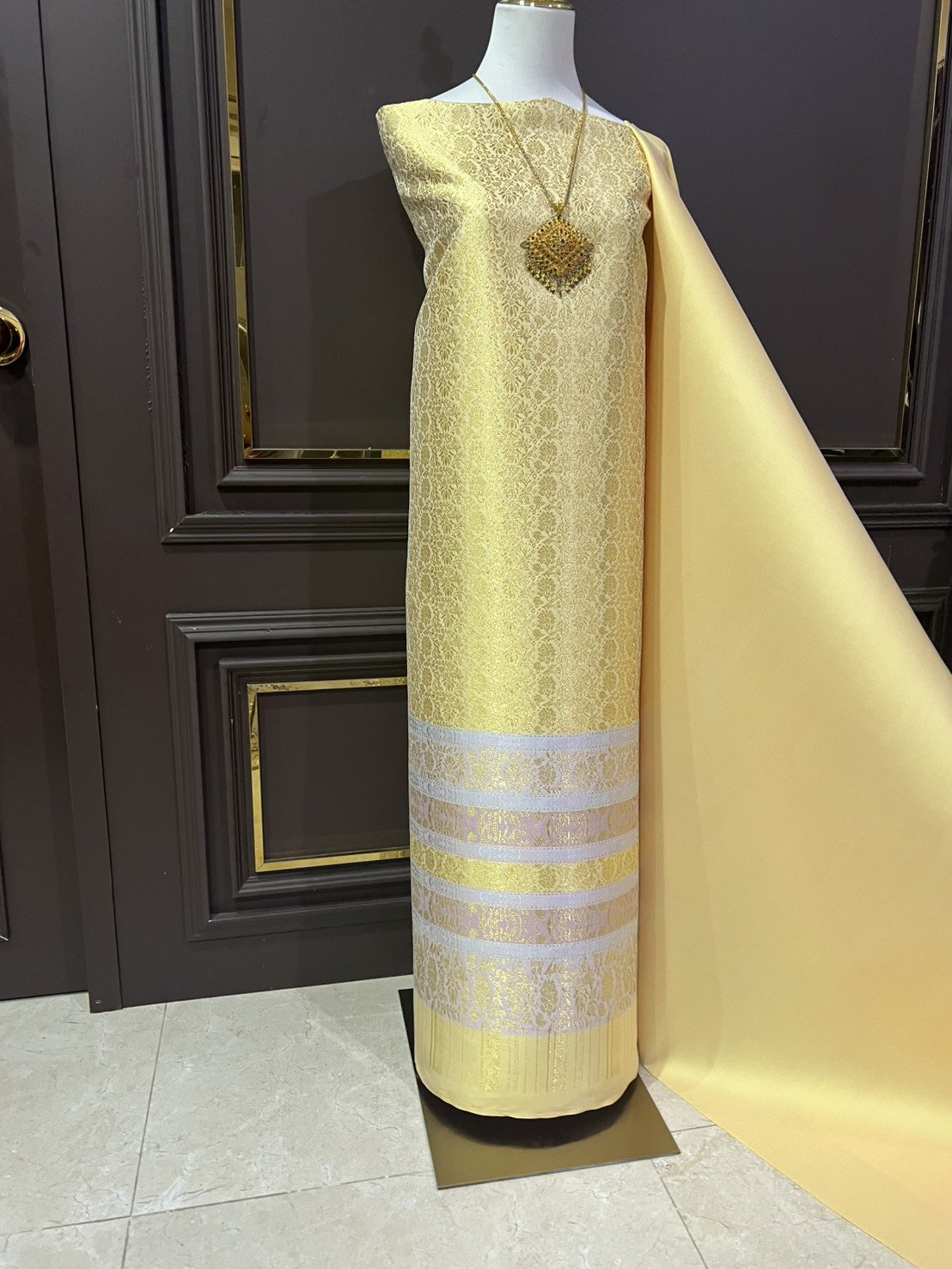 *มีตำหนิ ลายกุหลาบพันปี ยกใหญ่ลำพูนสีเหลือยกดอกดิ้นทอง