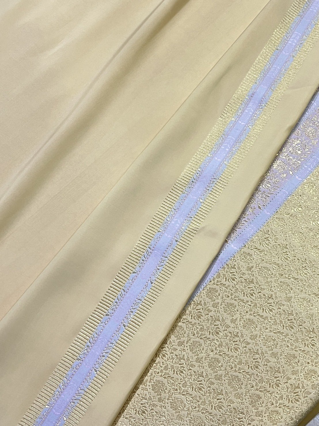 ลายพระราชสำนัก ยกใหญ่ลำพูนสีขาวออฟไวท์เกาะเชิงดิ้นเงินดอกข้อดิ้นทอง