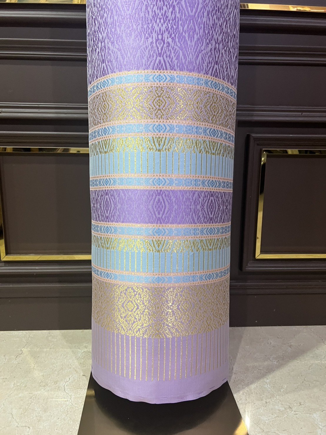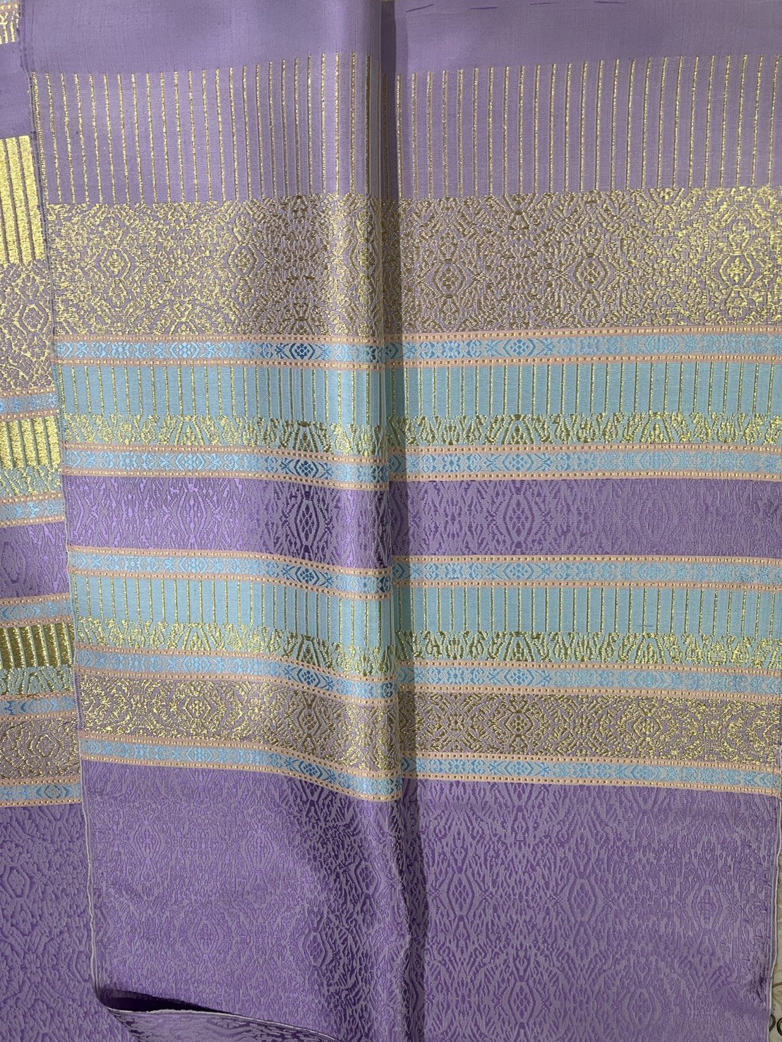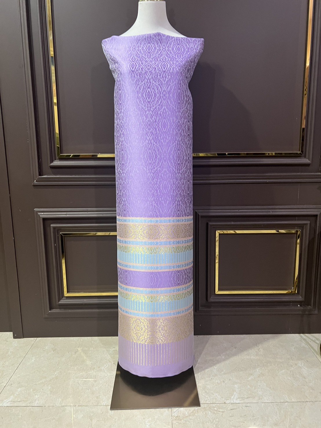 *มีตำหนิเนื้อเบา ลายอินเดีย ยกใหญ่ลำพูนผ้าซิ่นสีม่วงพระราชินีเกาะเชิงดิ้นทอง