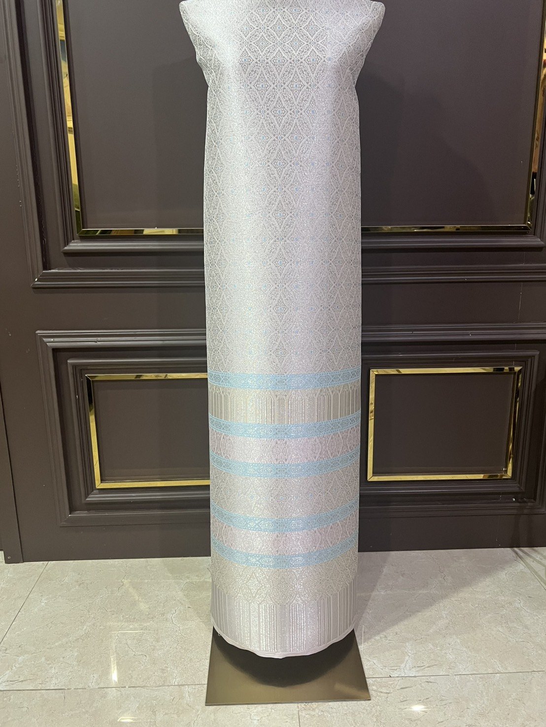 *มีตำหนิเนื้อเบา ลายอินเดีย ยกใหญ่ลำพูนผ้าซิ่นสีม่วงพระราชินีเกาะเชิงดิ้นเงิน