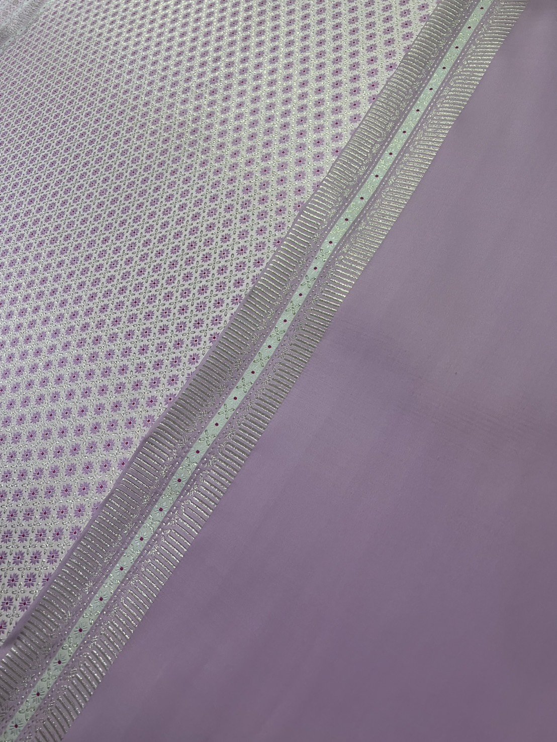 ลายพระราชสำนัก ยกใหญ่ลำพูนสีขาวออฟไวท์เกาะเชิงดิ้นเงินดอกข้อดิ้นทอง