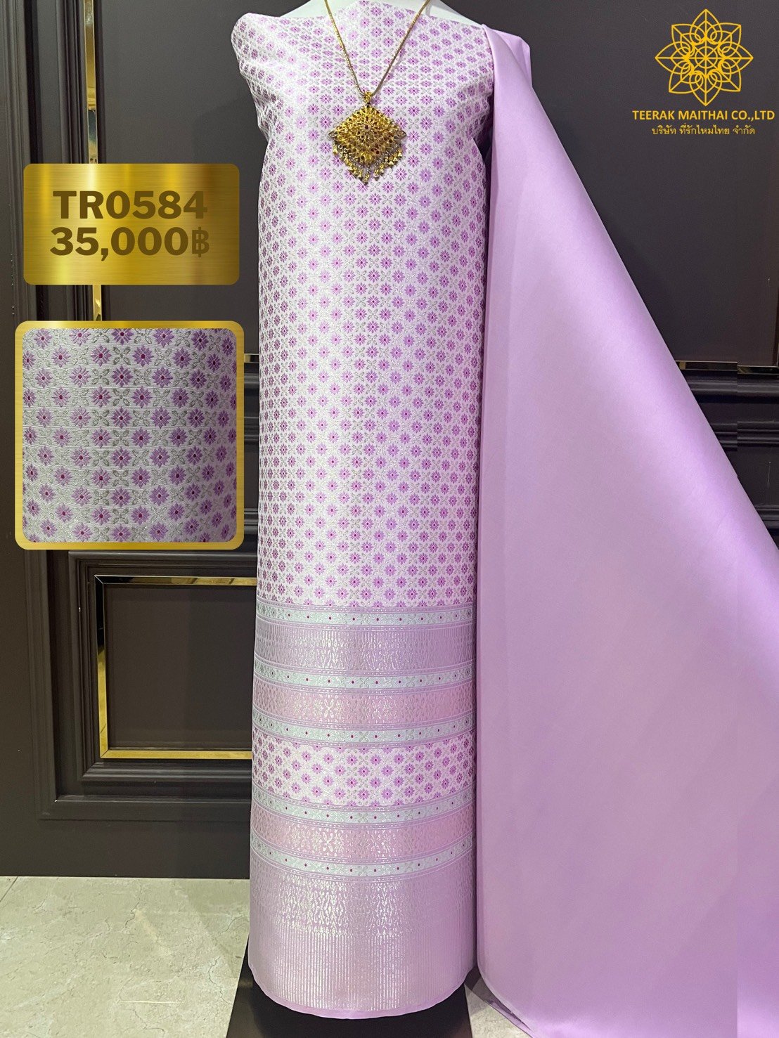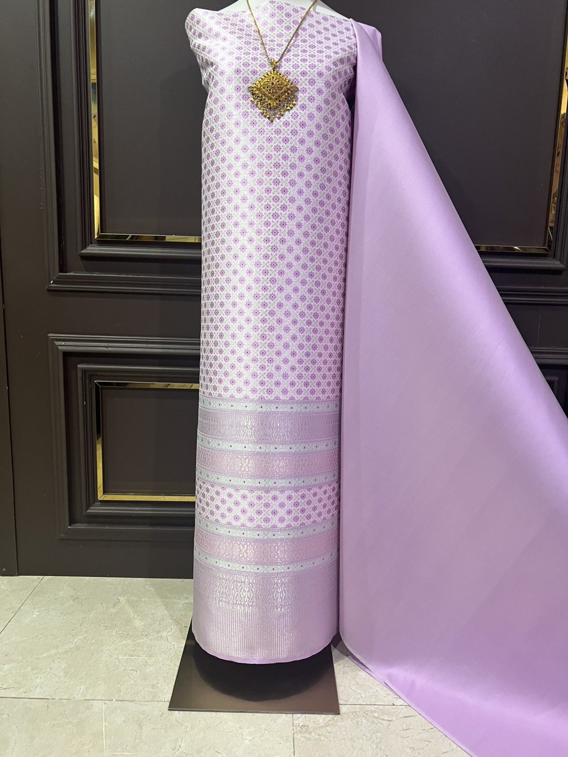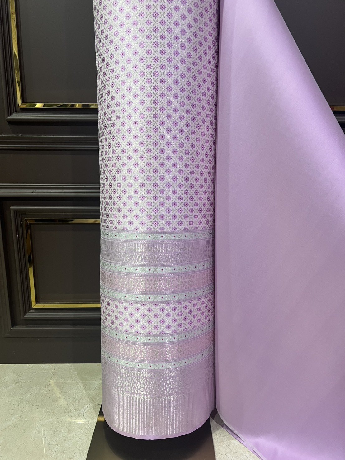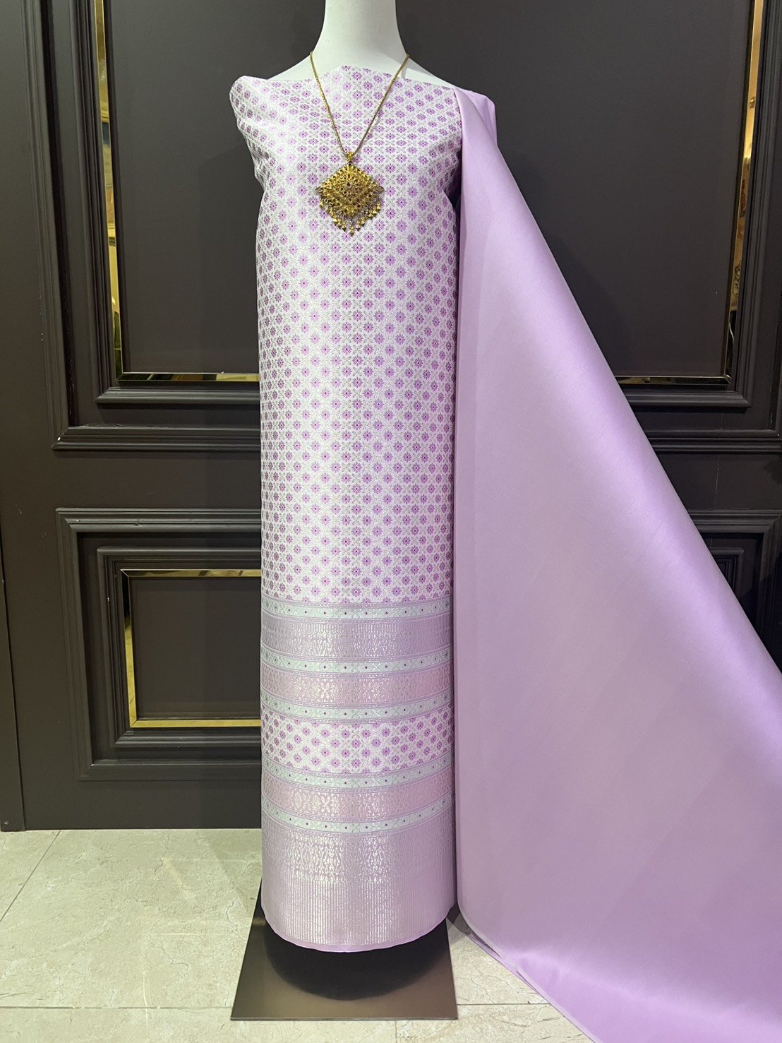 ลายเทียนหยด ยกใหญ่ลำพูนสีขาวออฟไวท์เกาะเชิงดิ้นเงิน