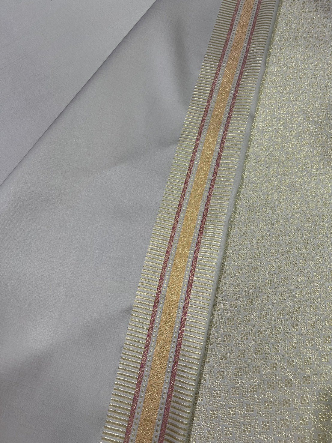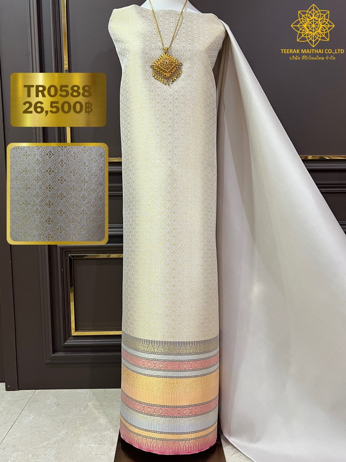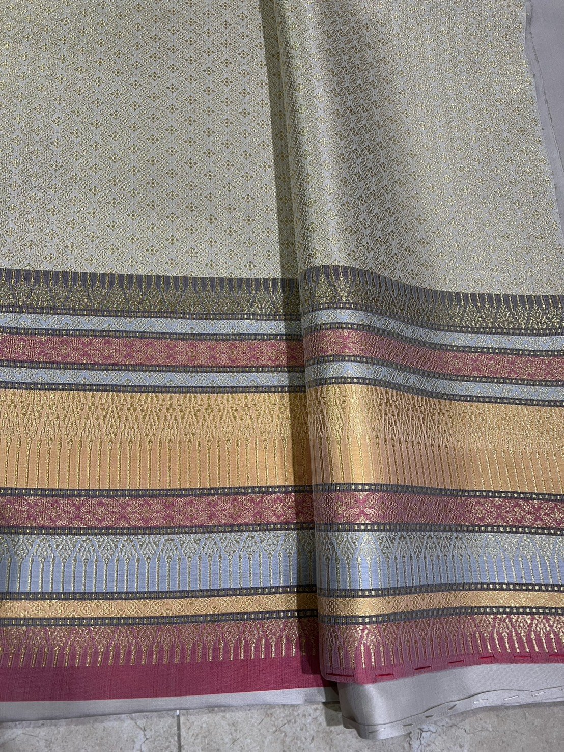 ลายแก้วกาหลง ยกใหญ่ลำพูนสีขาวออฟไวท์เกษรดิ้นเงินเกาะเชิงดิ้นเงิน