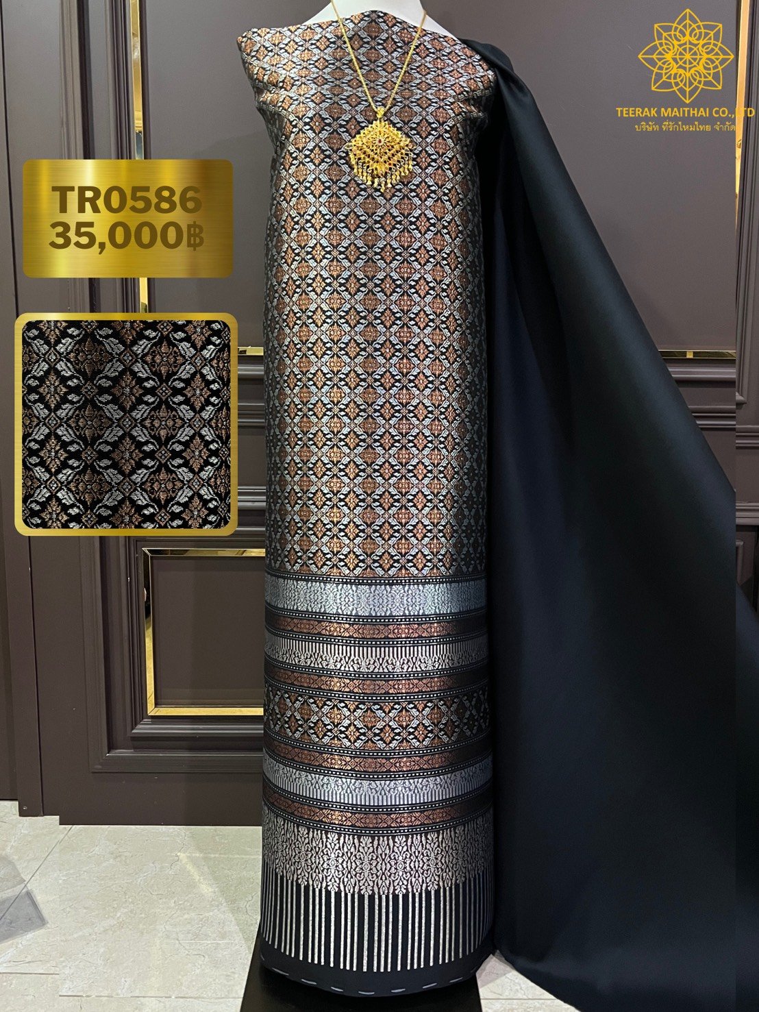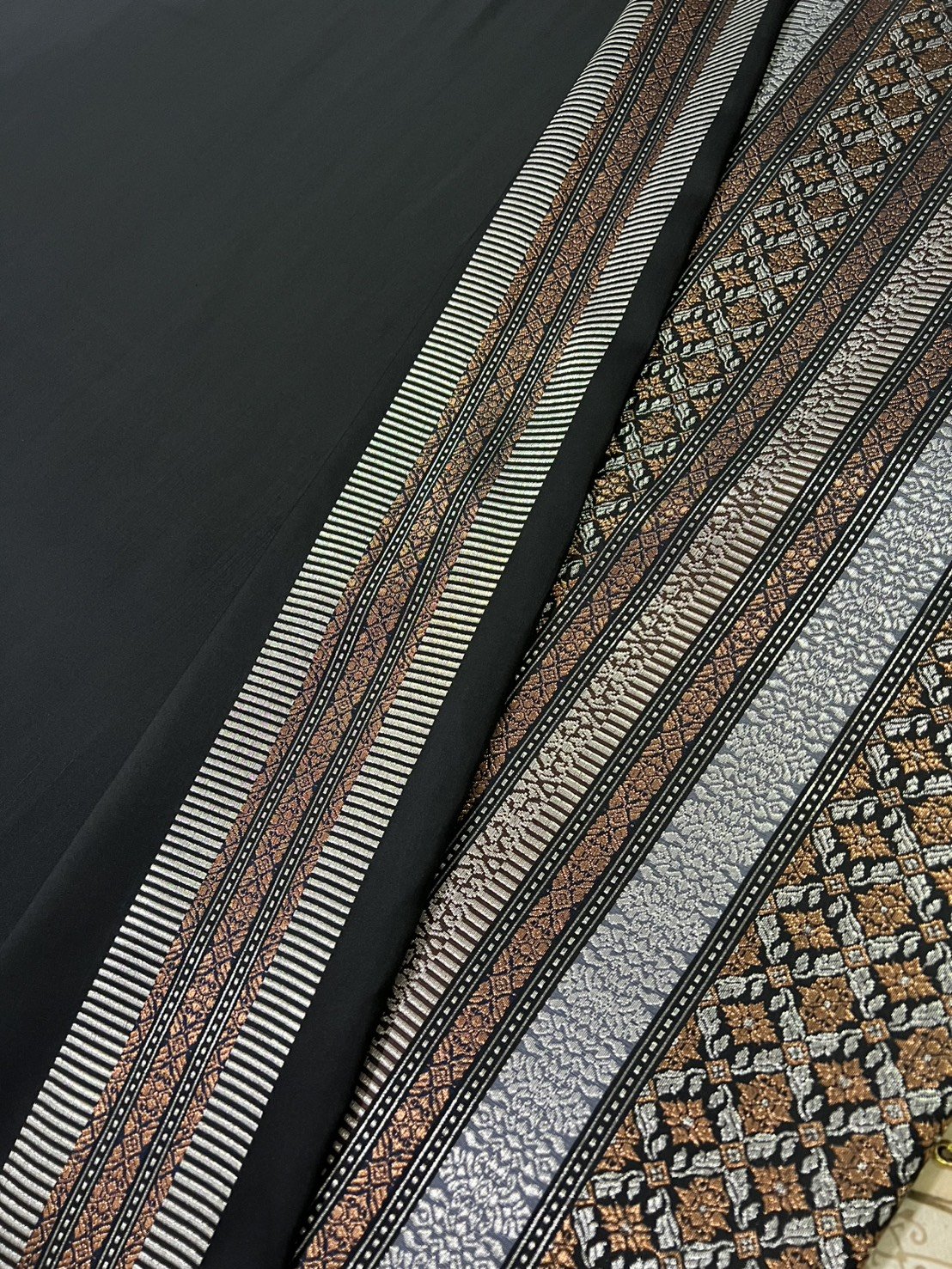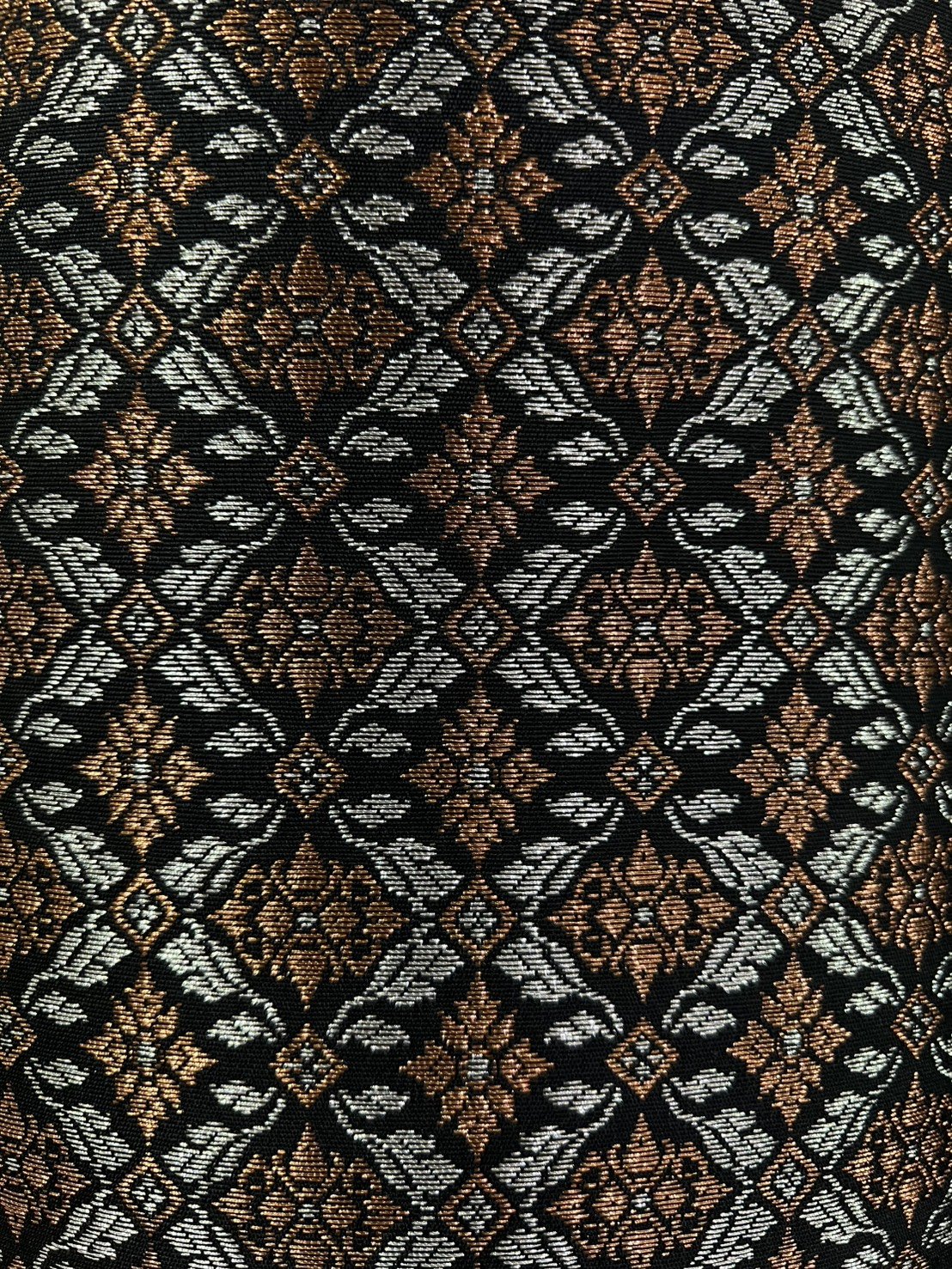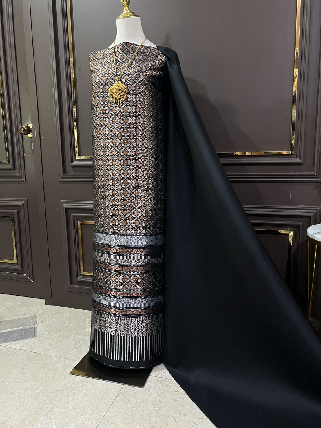ลายบุษราคัมร้อยดวง ยกใหญ่ลำพูนสีดำกาบดิ้นเงินดอกดิ้นสีนาค