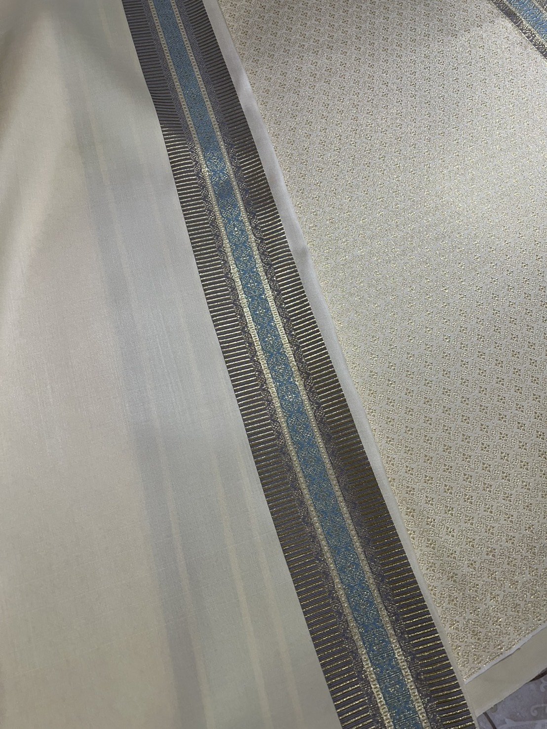 ลายแก้วกาหลง ยกใหญ่ลำพูนสีขาวออฟไวท์เกษรดิ้นเงินเกาะเชิงดิ้นเงิน