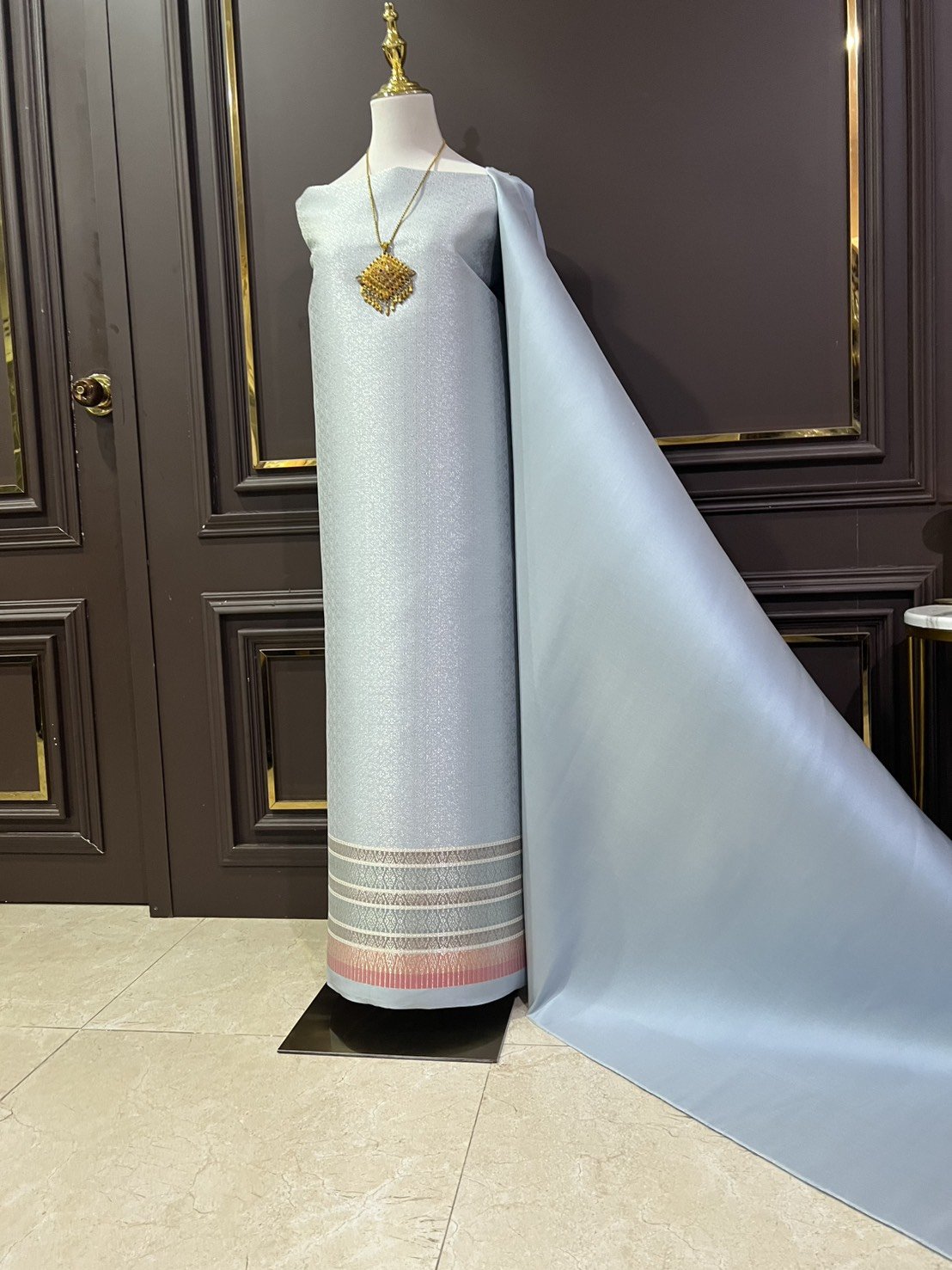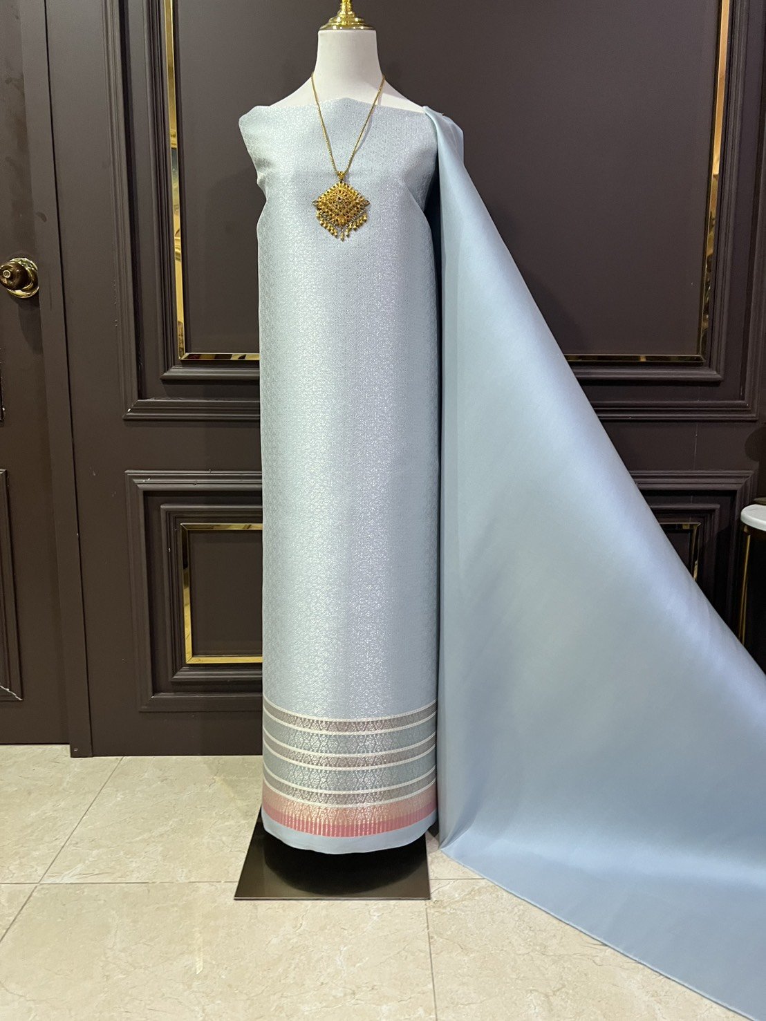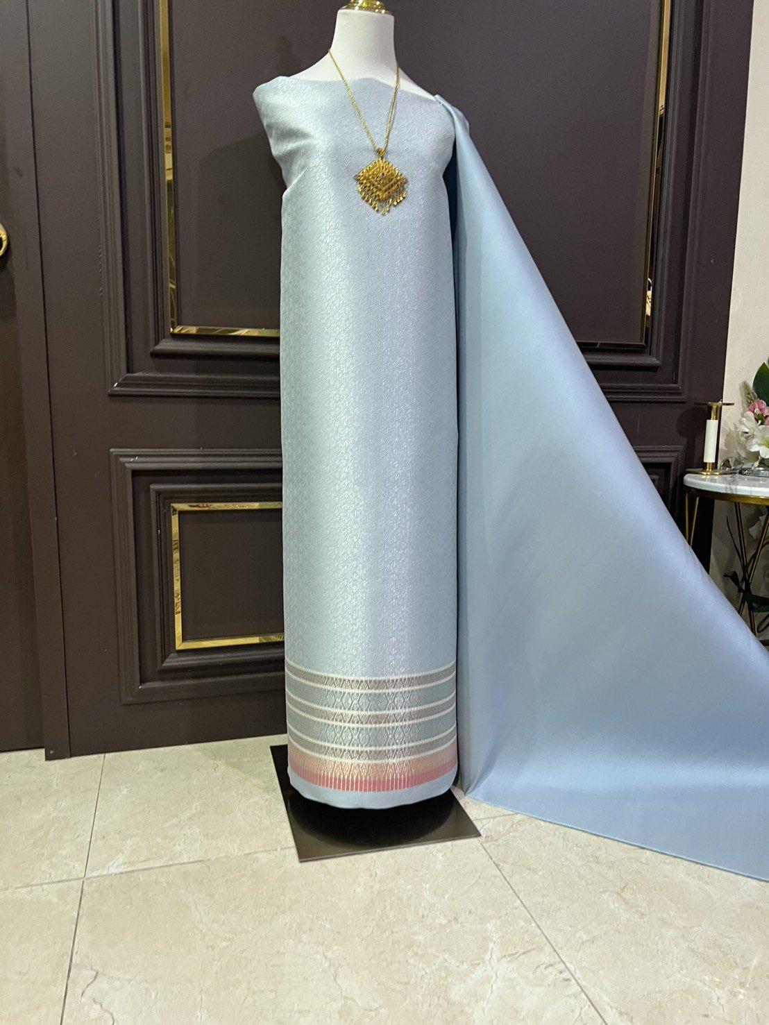 ผ้าไหมสีเทาฟ้า