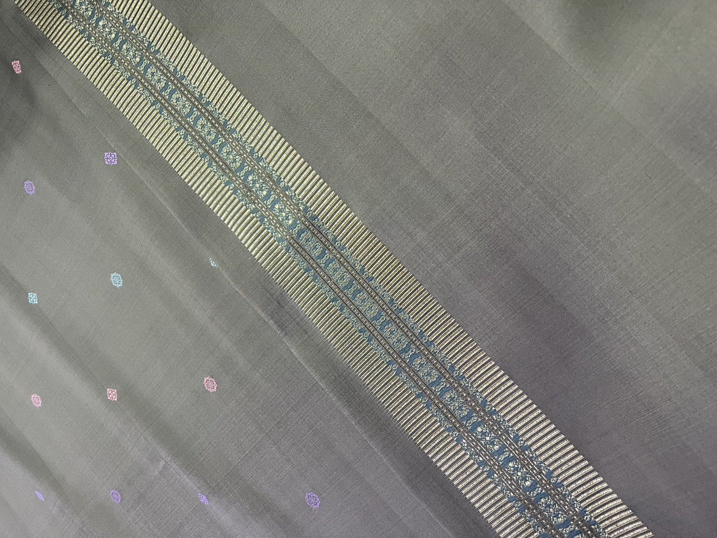 ลายเพชรพิกุล ยกใหญ่ลำพูนสีเทาอมเขียวยกดอกลอย