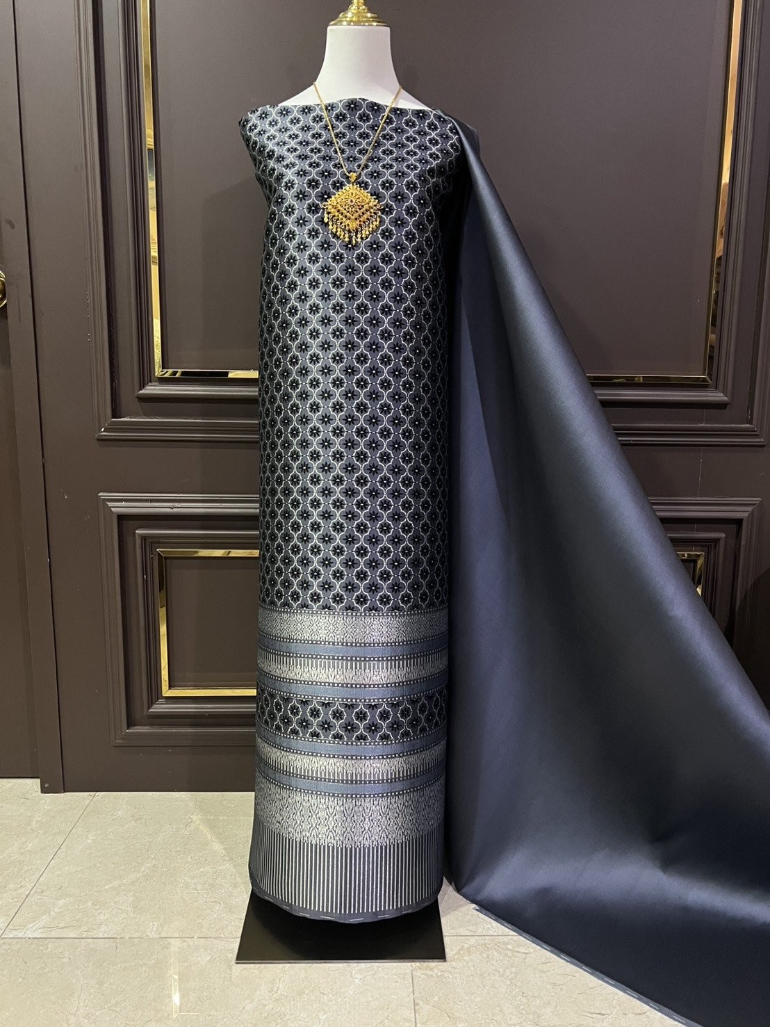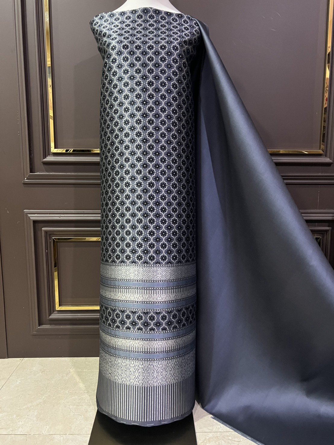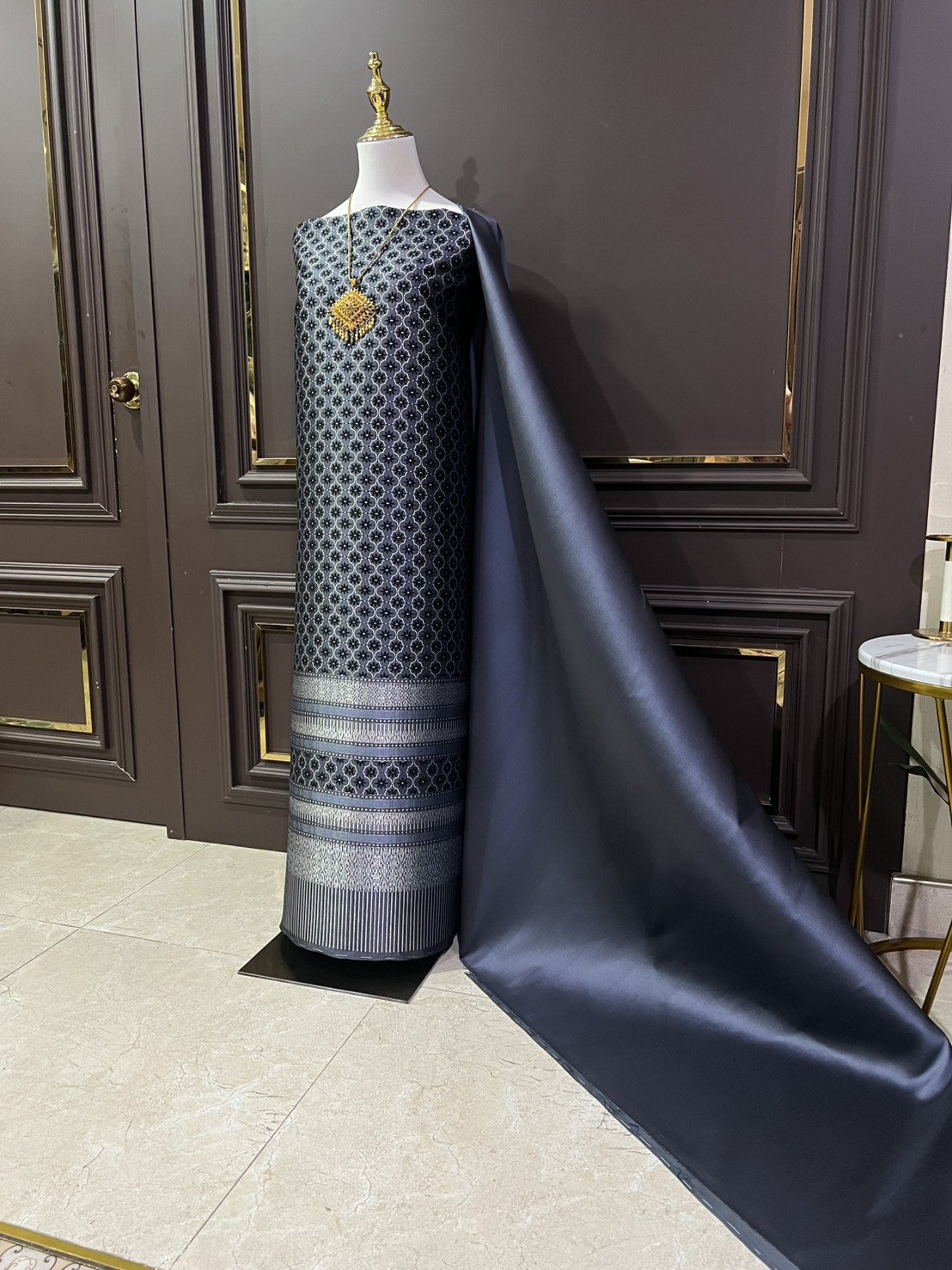 ลายผการัตน์ ยกใหญ่ลำพูนสีเทาเกาะเชิงดิ้นเงิน