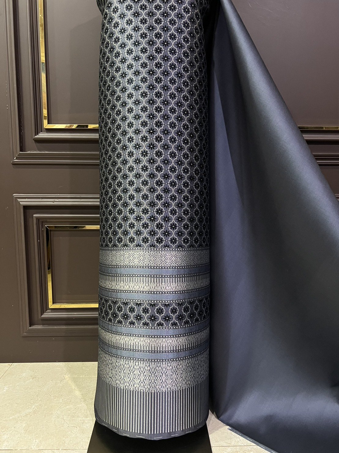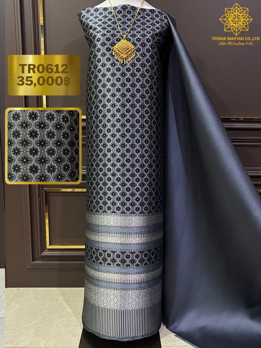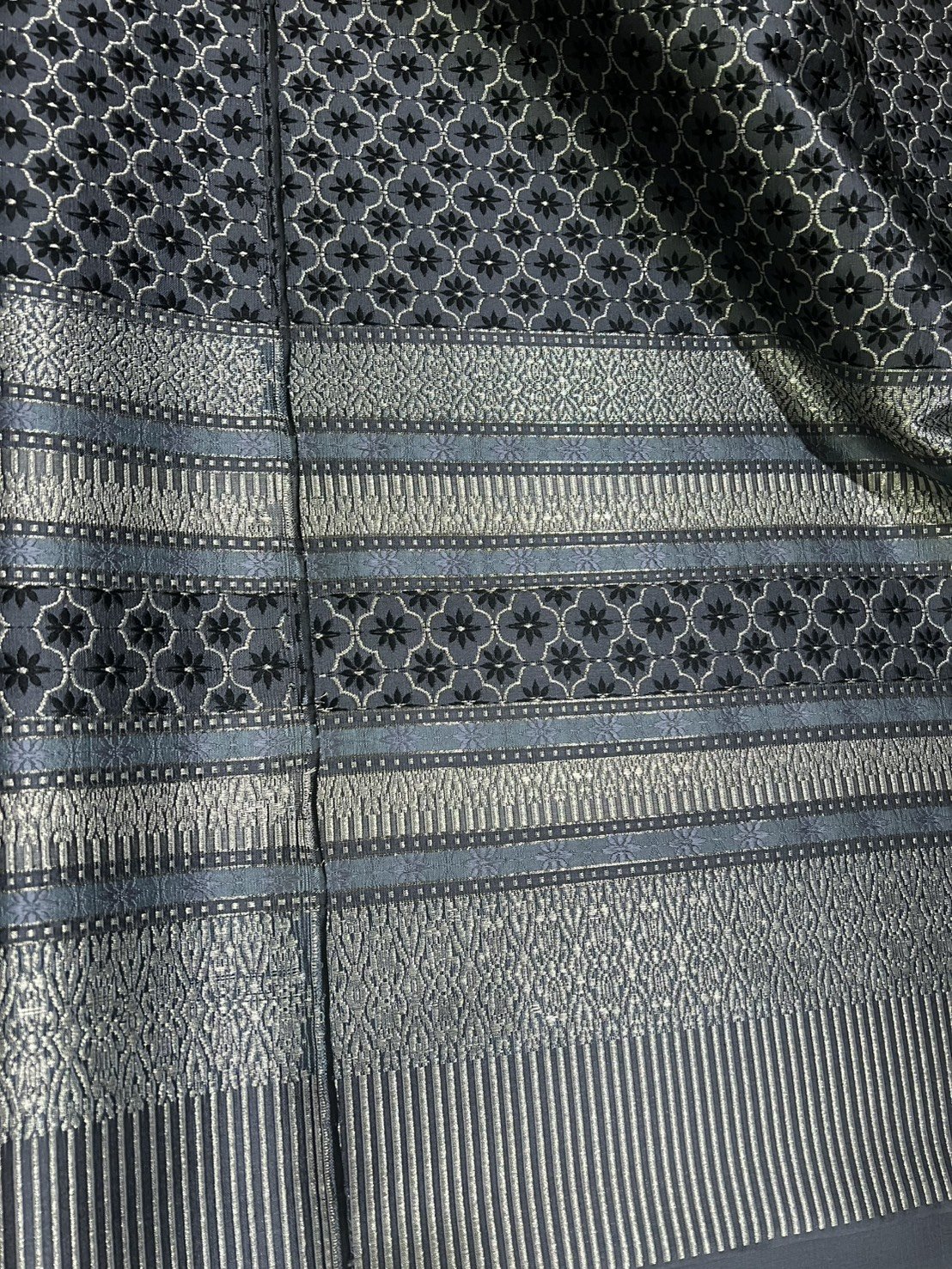 ลายผการัตน์ ยกใหญ่ลำพูนสีเทาเกาะเชิงดิ้นเงิน